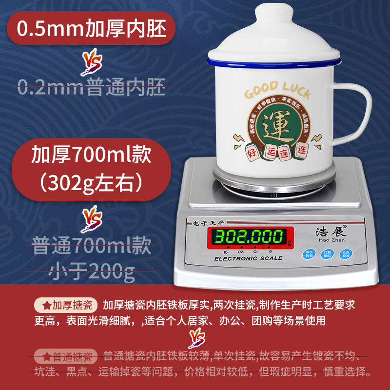 📚 搪瓷杯发发财带盖大容量怀旧马克杯老干部老式茶缸子麻将雀神茶杯
