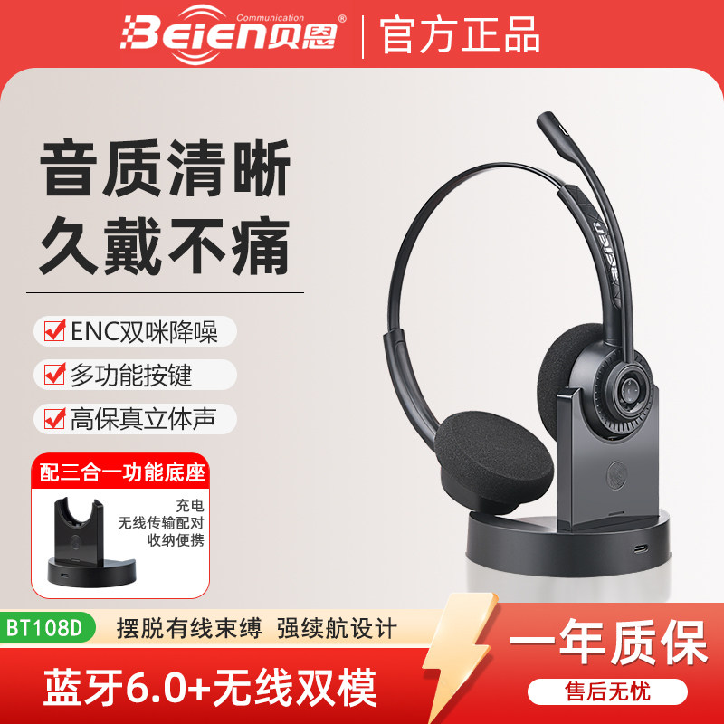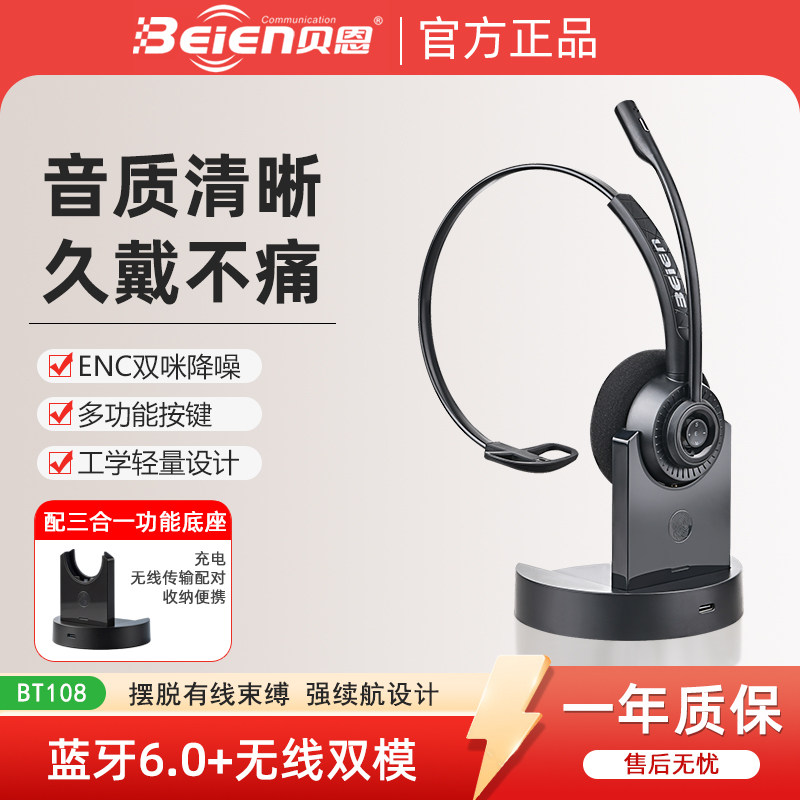 📚 贝恩BT108头戴式话务耳机ENC降噪蓝牙无线手机电脑双模客服耳麦