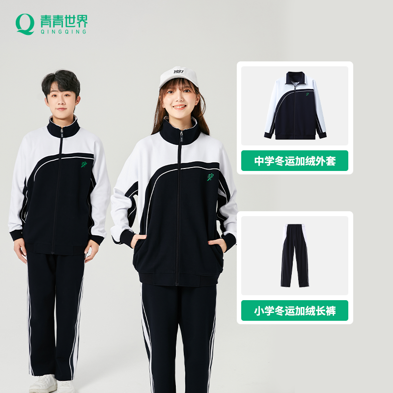 📚 青青世界特版深圳校服中学加绒套装冬运保暖银狐绒加厚加绒裤外套