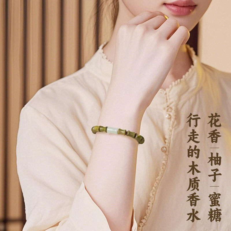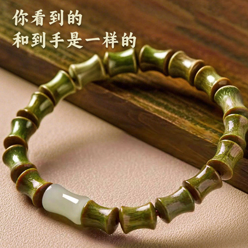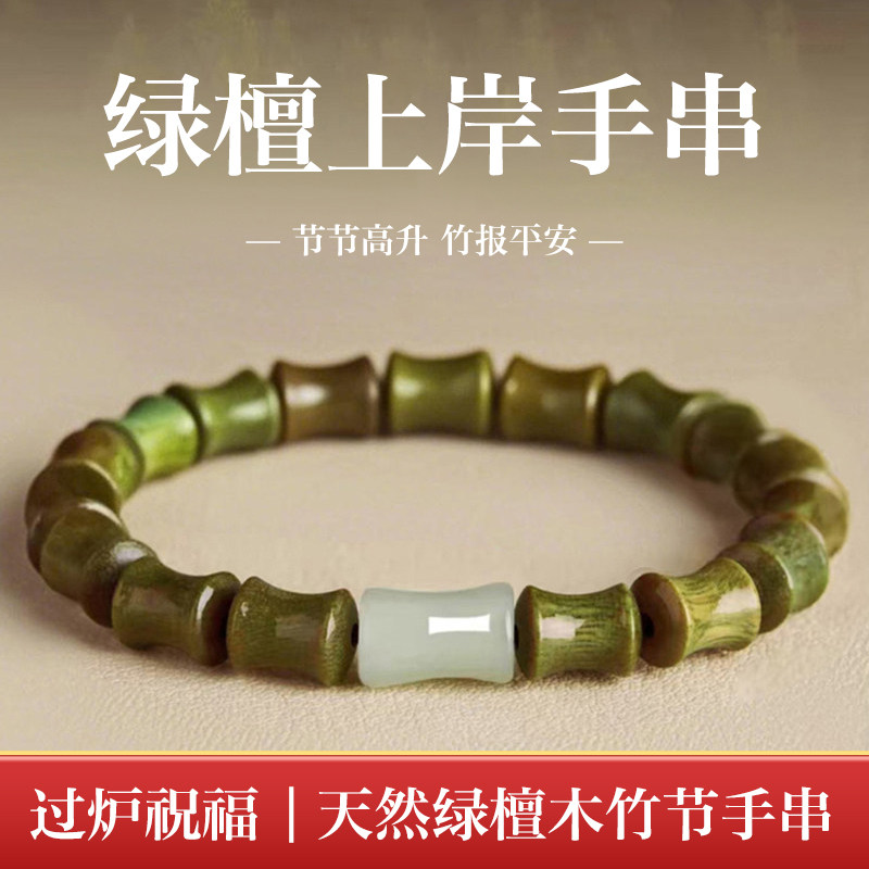 📚 天然绿檀木竹节节高升手串男款文玩沉香盘玩佛珠和田玉转考学礼物