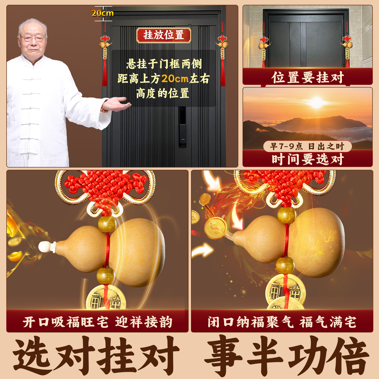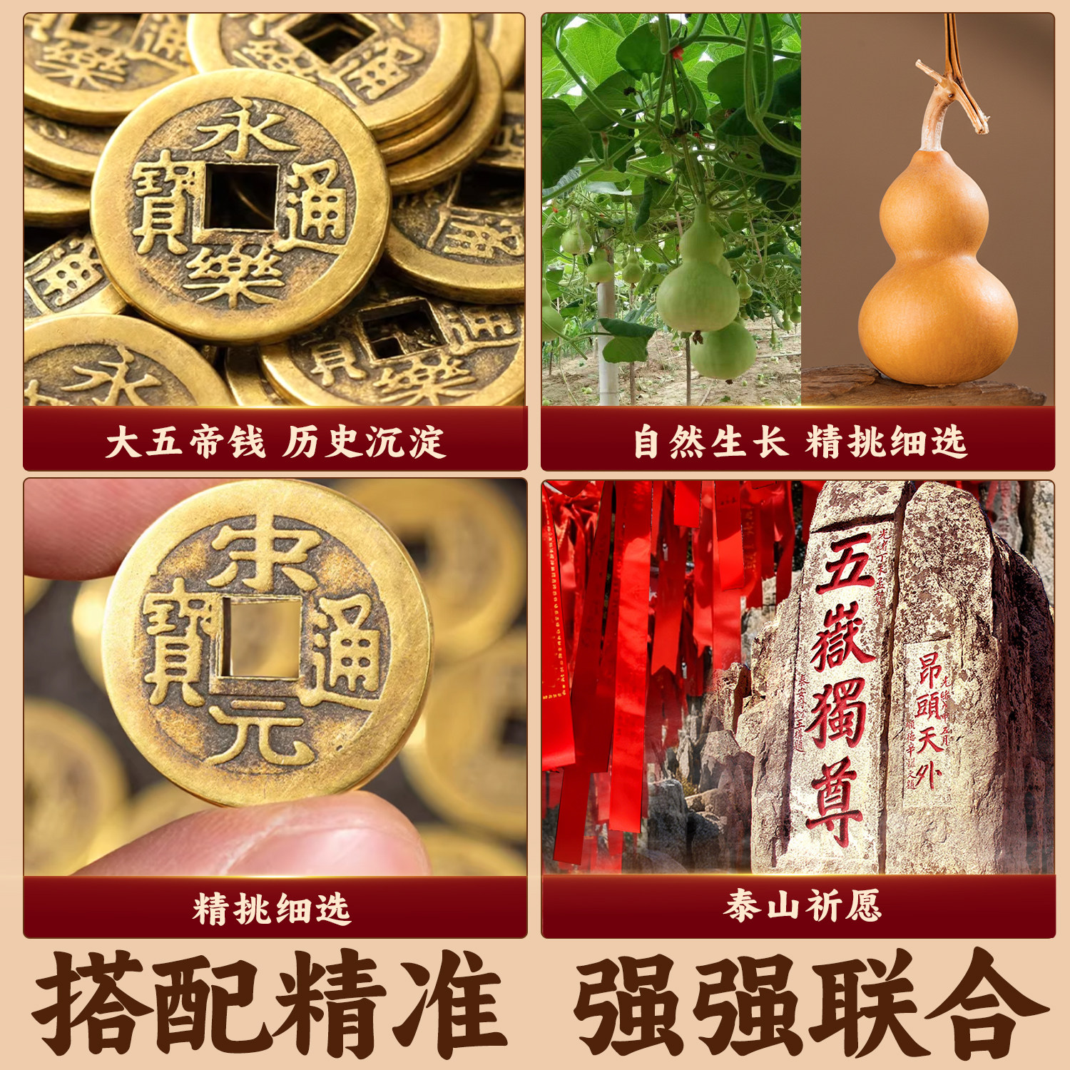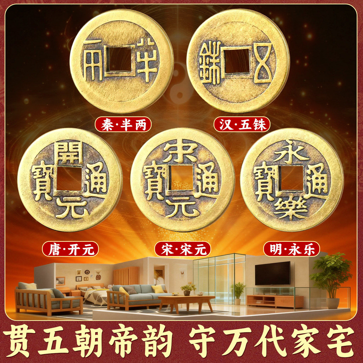 📚 中华大五帝钱真品挂件明朝上古黄铜钱葫芦门对门秦半两汉唐宋入户