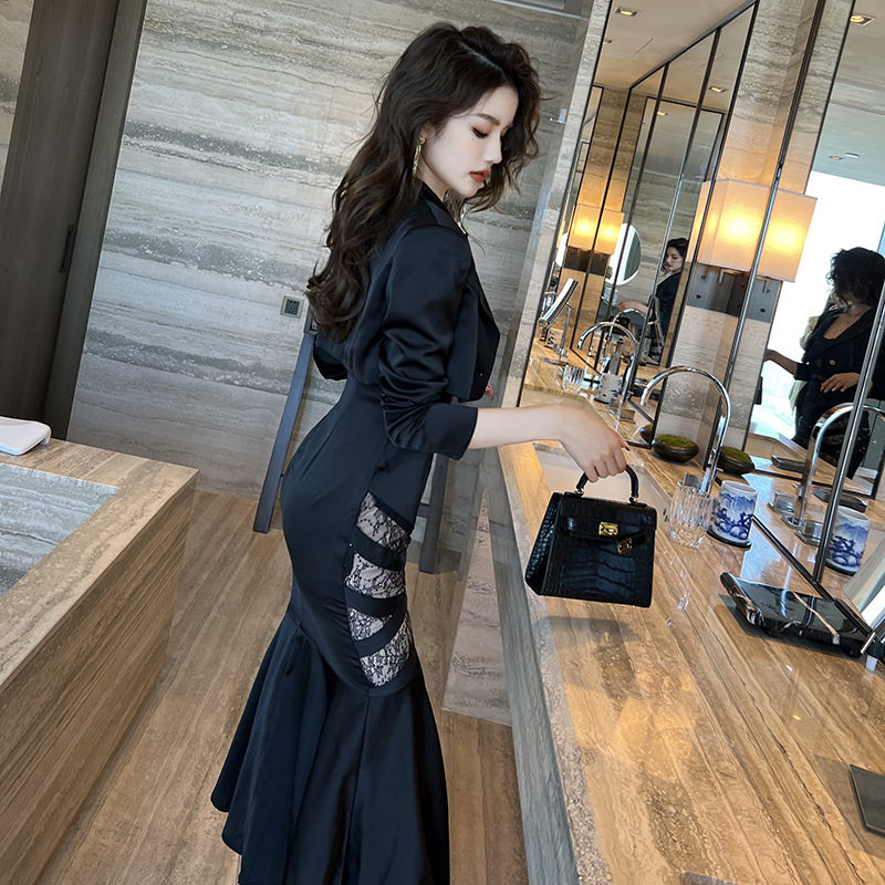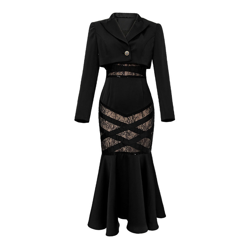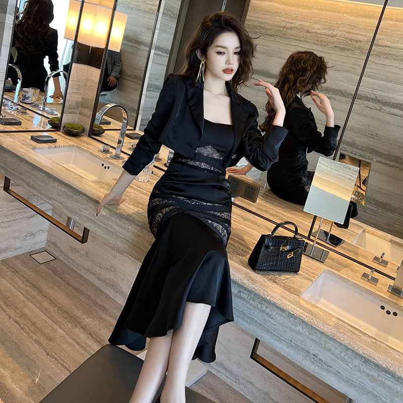 📚 2026秋新款收腰小西服短款鱼尾裙御姐风两件套装时尚百搭连衣裙女
