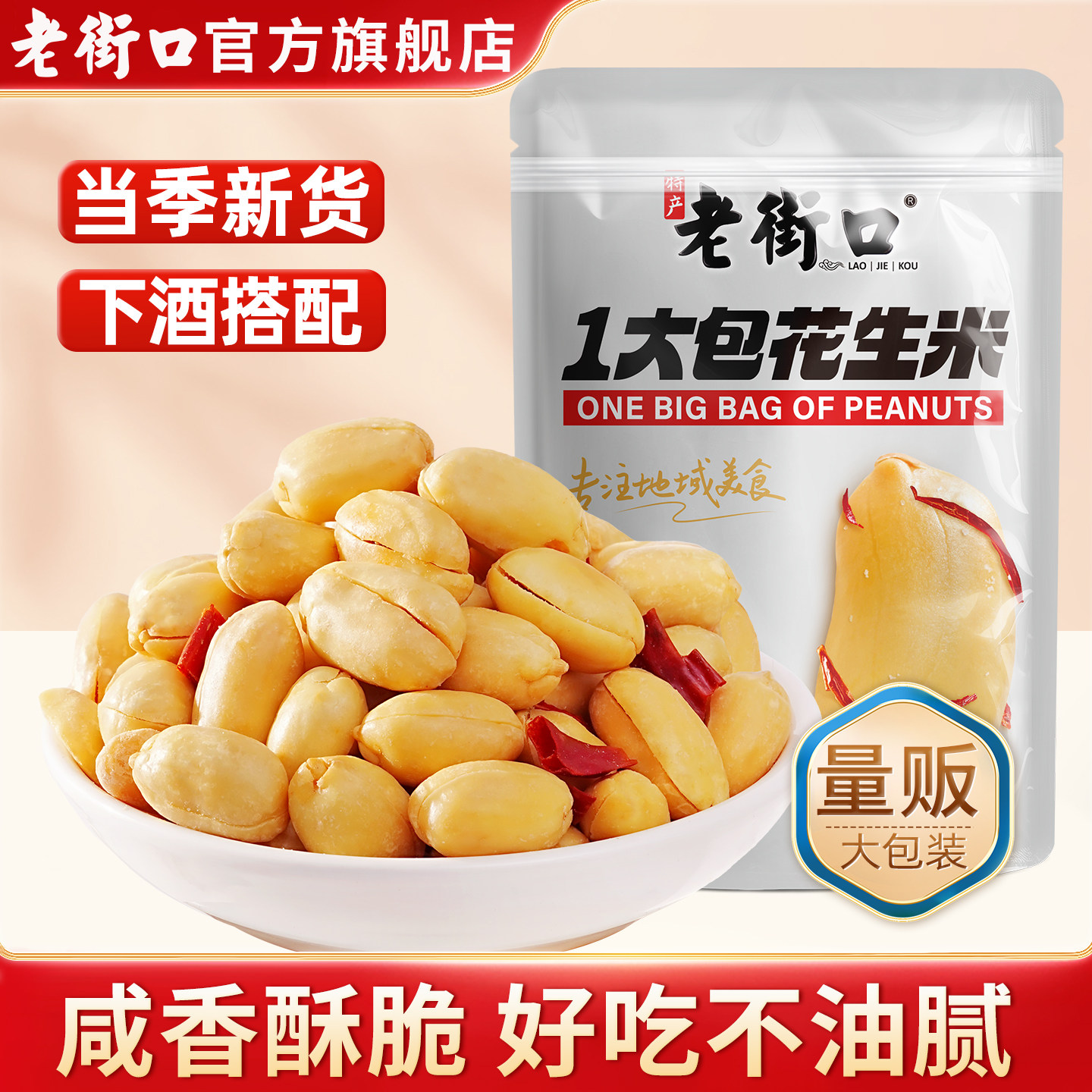 📚 老街口一大包脱油花生米400g下酒菜小吃香辣椒盐花生米办公室零食