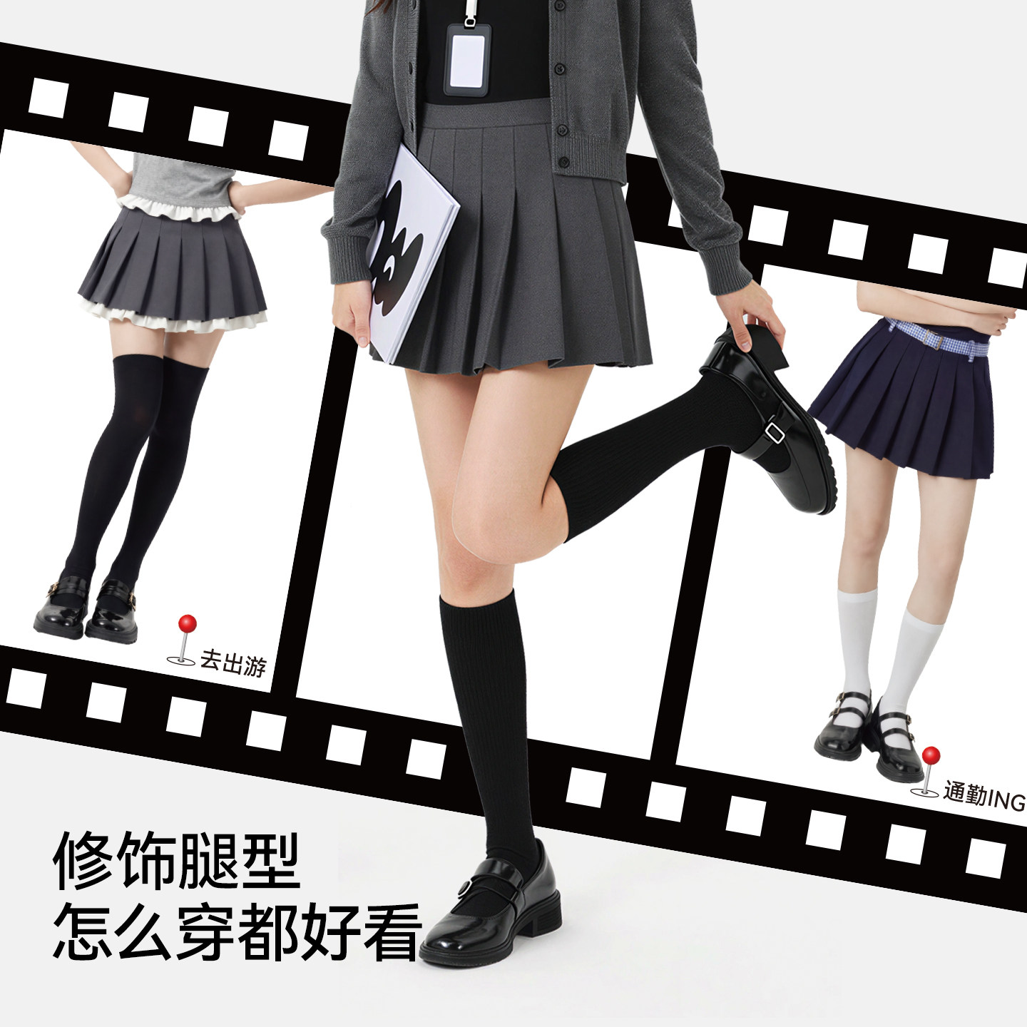 📚 压力小腿袜女春秋强压显瘦腿jk袜子防滑黑色过膝中高筒运动长筒袜