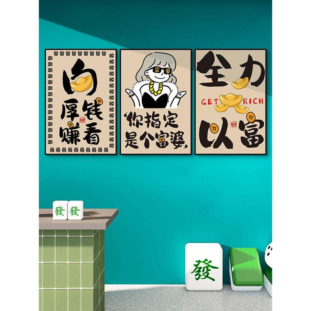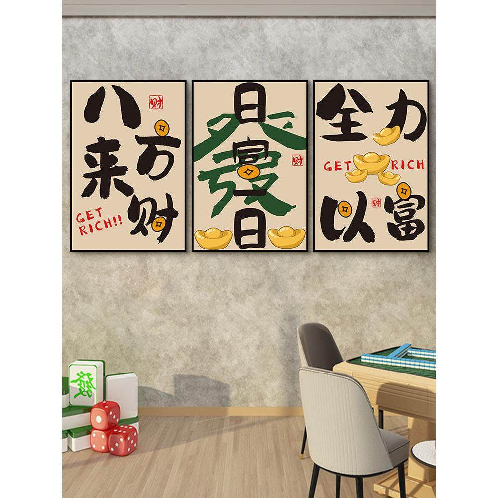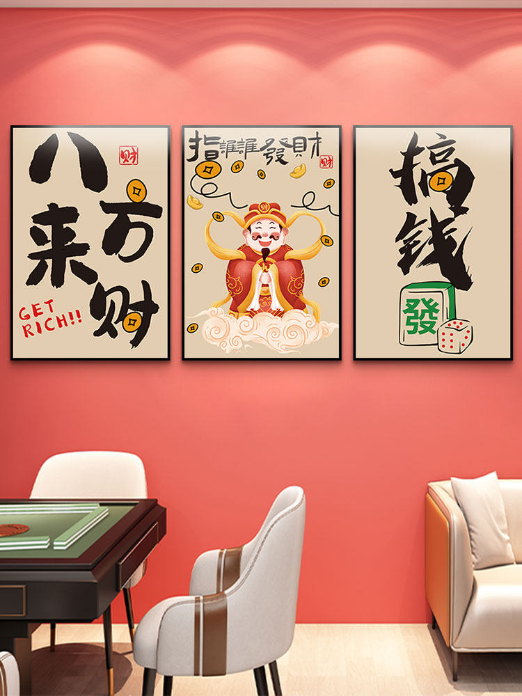 📚 棋牌美术室装饰画网红麻将厅背景墙贴纸挂画麻将室跳棋室文化墙标