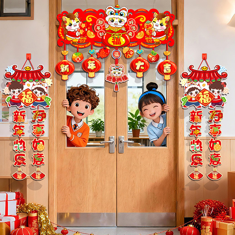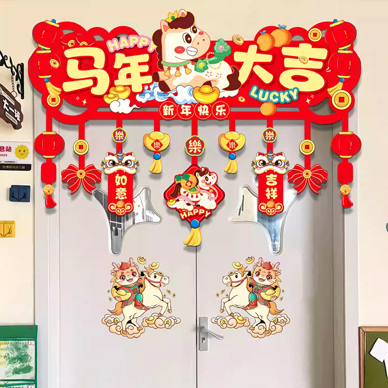 📚 2026新年马年横彩门幅挂饰学校教室客厅门口装饰过年场景氛围布置
