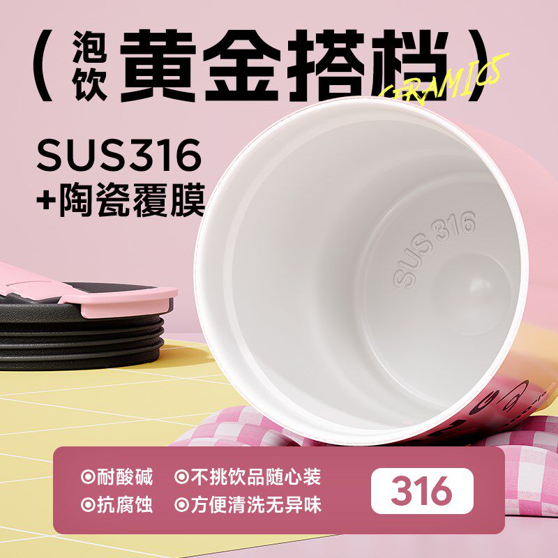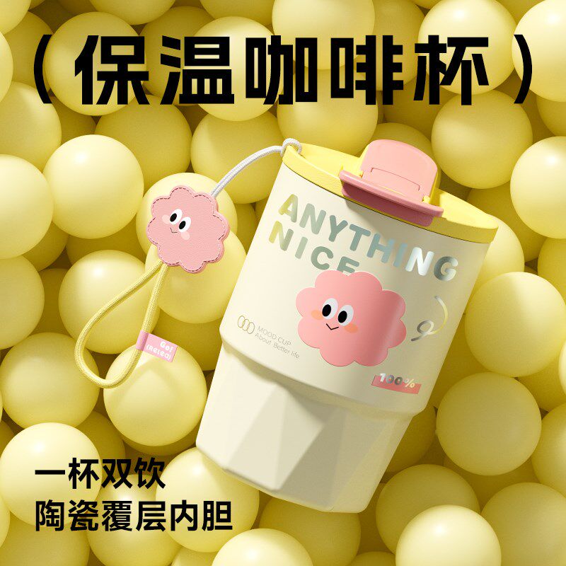 📚 保温杯女生高颜值咖啡杯陶瓷内胆便携小巧双饮吸管水杯子2023新款