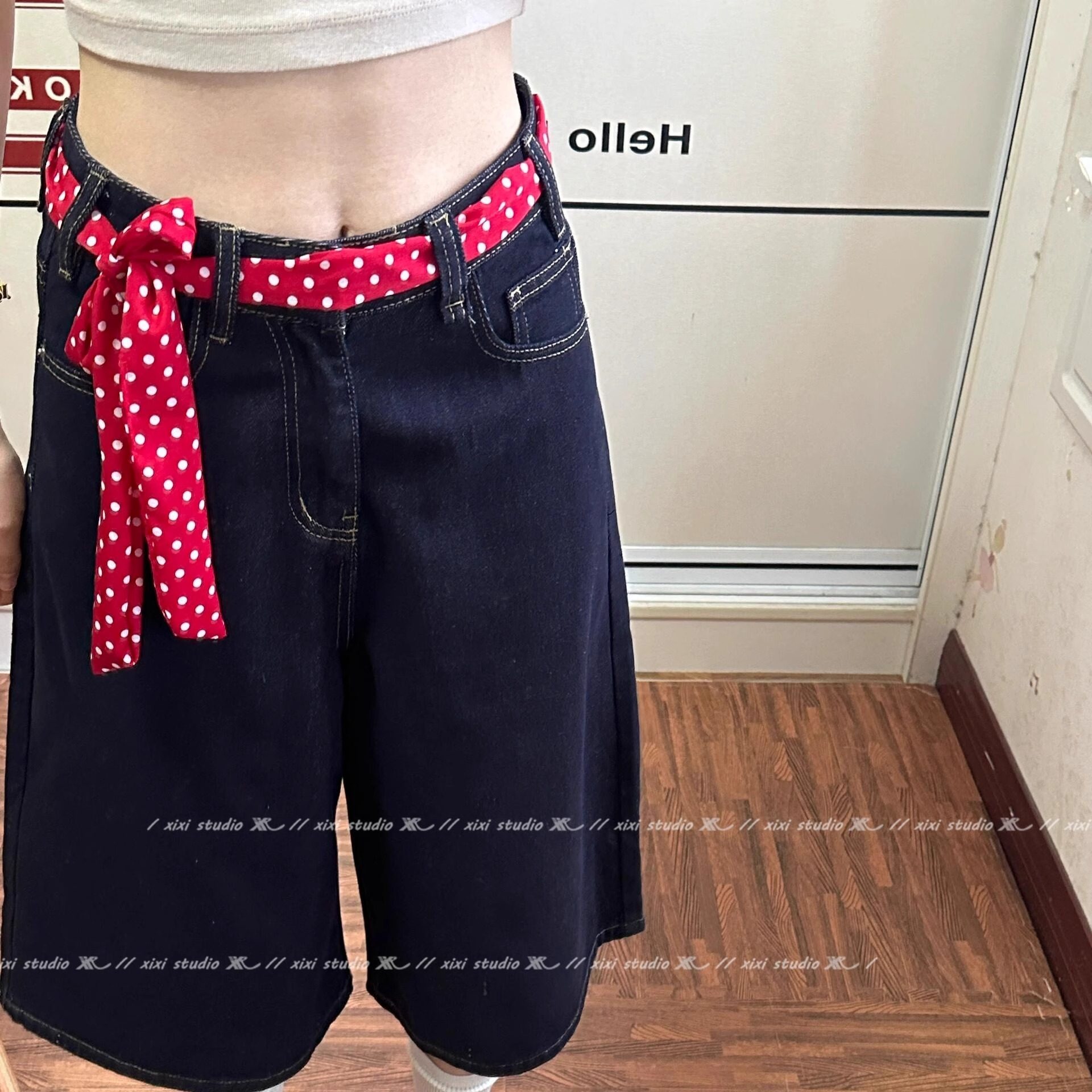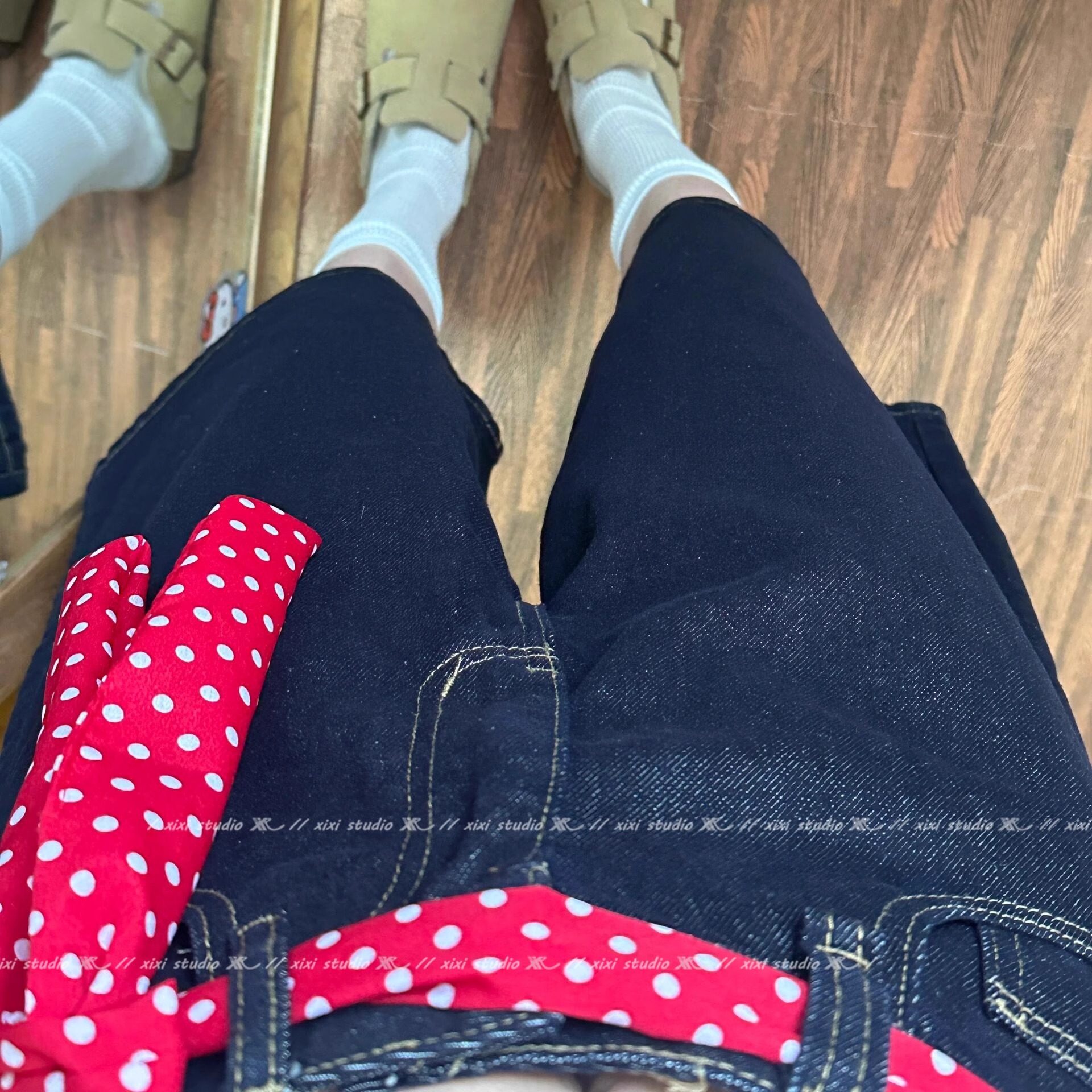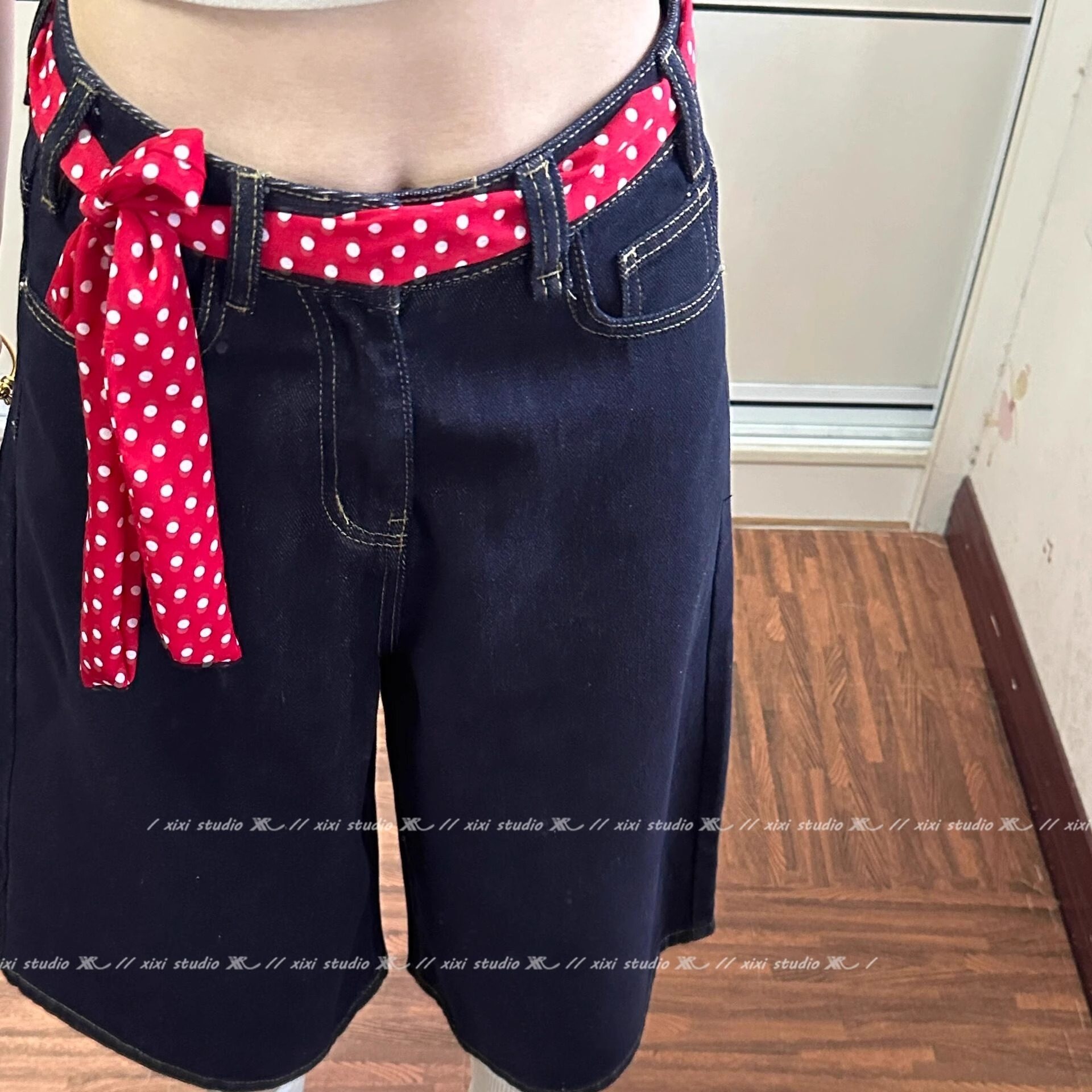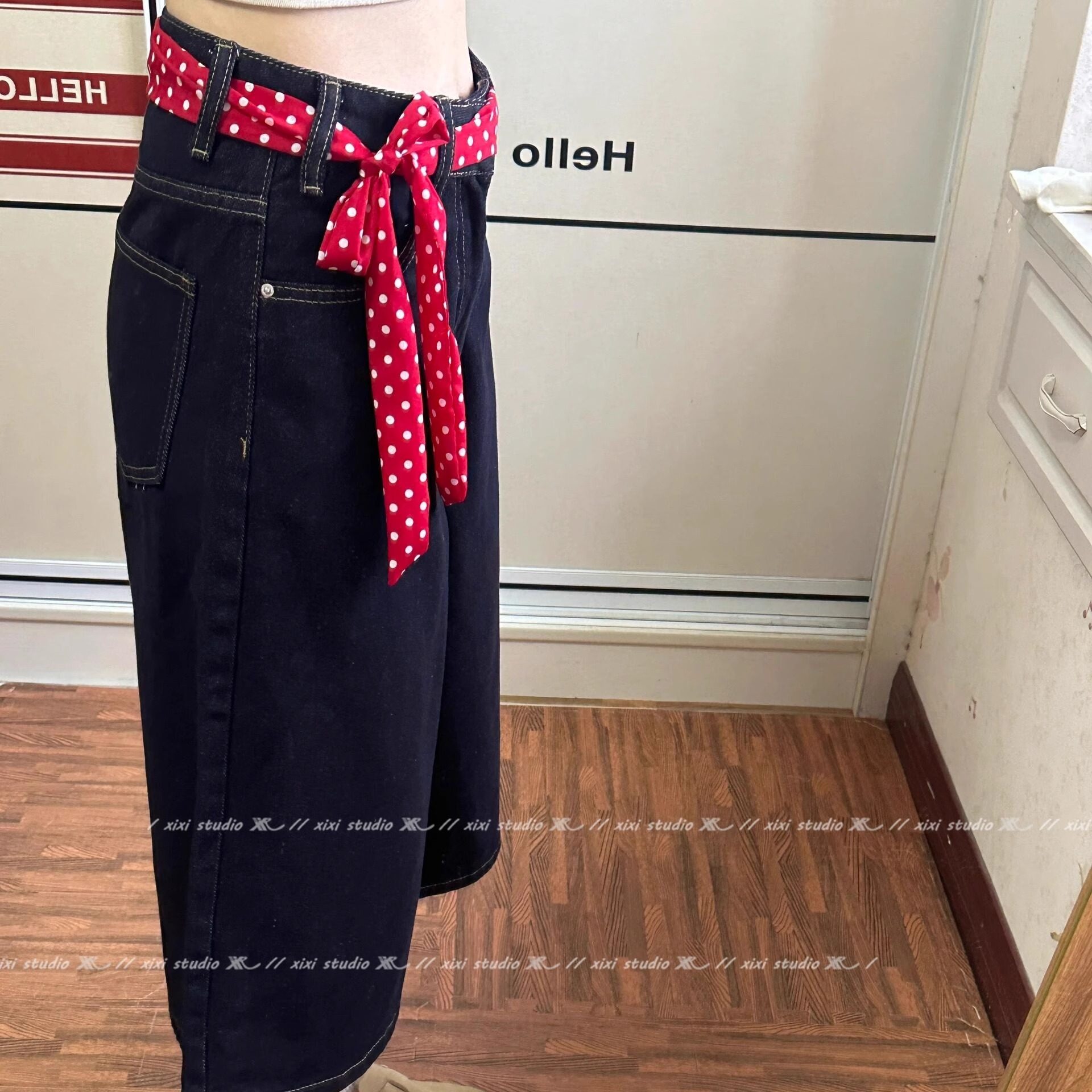📚 红色波点丝带腰带配饰系腰系脖长条丝巾两用配牛仔裤子裤腰系带