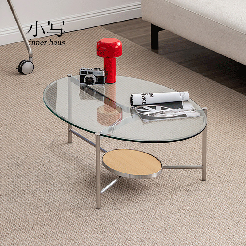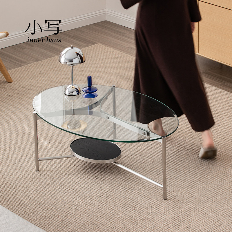 📚 小写inner现代简约茶几客厅家用小户型轻奢感包豪斯椭圆玻璃茶桌
