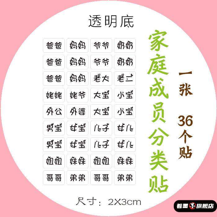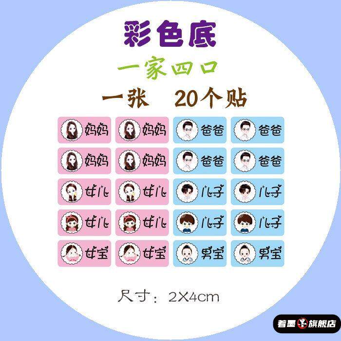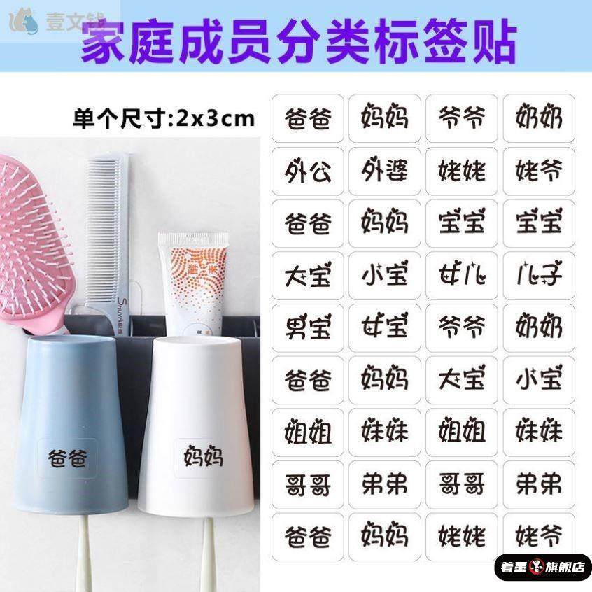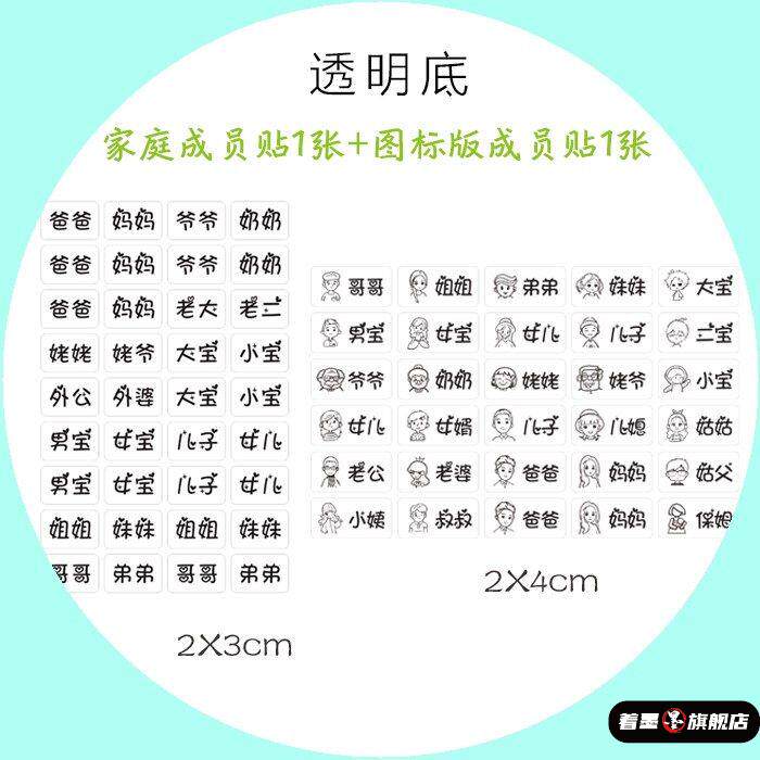 📚 爸爸妈妈全家称呼贴纸透明标签筷子牙杯毛巾区分姓名防水不干胶贴爸爸妈妈一家四口形象墙透明标签贴家庭用品