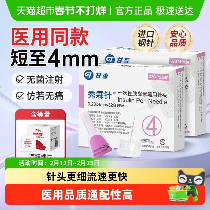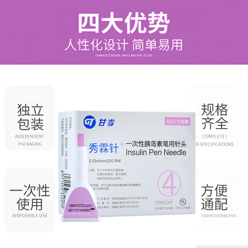 📚 甘李秀霖针一次性胰岛素注射笔用针头32G*4mm通用糖尿病打胰岛素