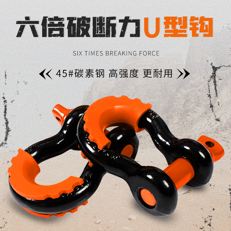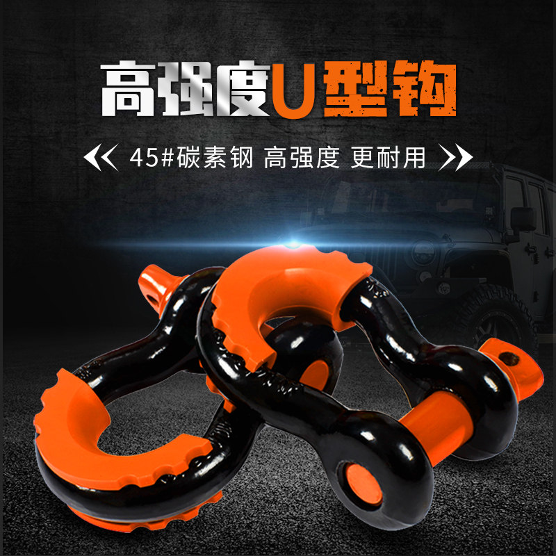 📚 越野车救援拖车钩高强度弓形钩通用改装牵引拖车绳钩锰钢u型卸扣