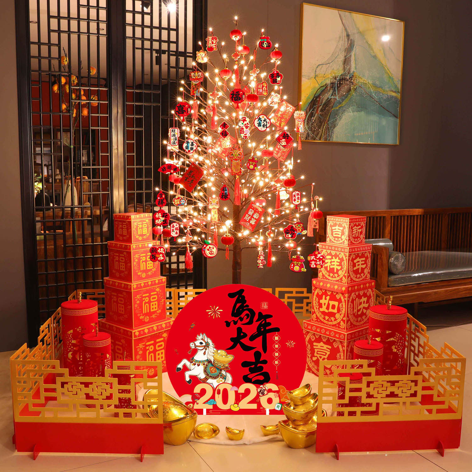 📚 2026马年新年装饰挂件春节元旦过年氛围摆件套餐圣诞树灯场景布置