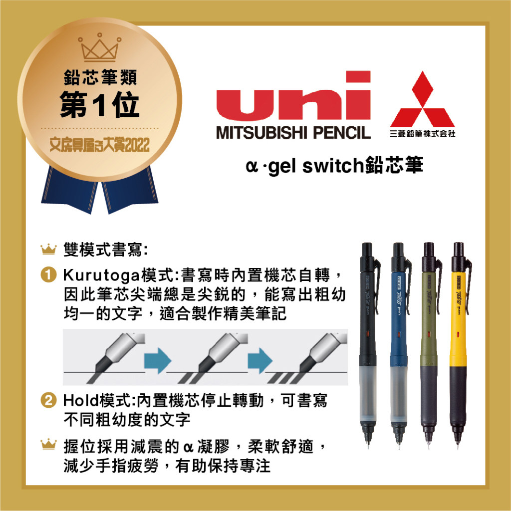 📚 日本uni三菱自动铅笔M5-1009GG SWITCH旋转双模式防疲劳学生0.5mm