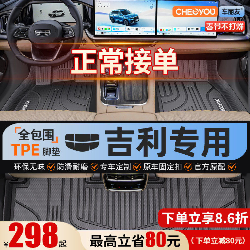 📚 车丽友适用吉利星瑞博越L星越L星愿缤越银河E5帝豪TPE全包围脚垫