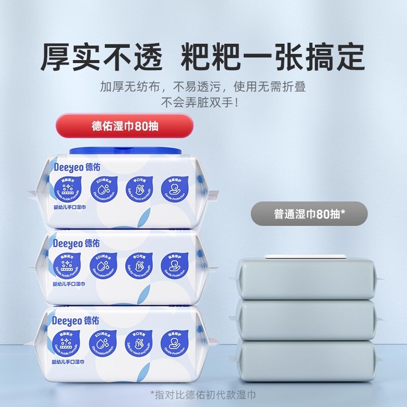 📚 德佑湿巾正品大包80抽无酒精消毒新生儿亲肤加厚婴幼儿手口湿纸