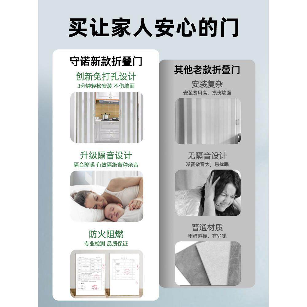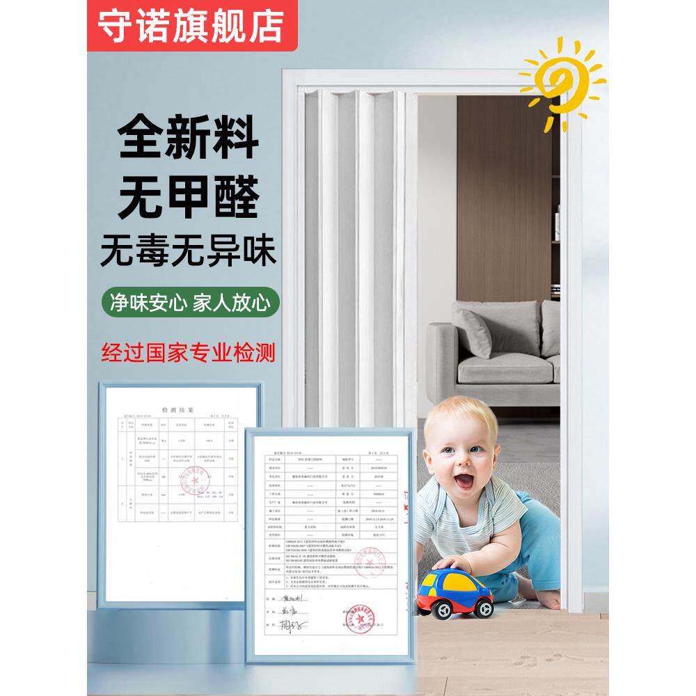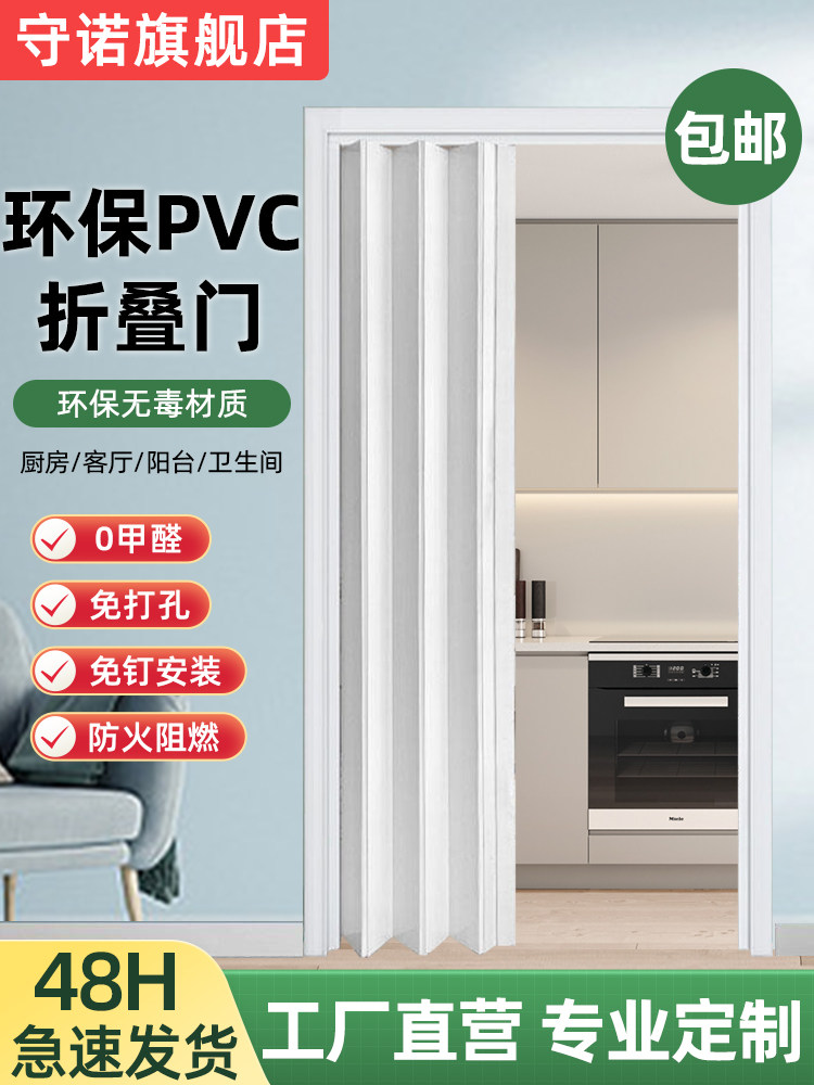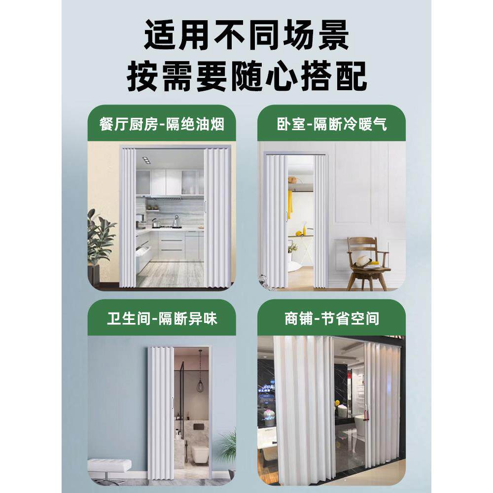 📚 折叠门pvc 推拉隐形隔断卧室厨房卫生间无地轨简易门开通燃气临时