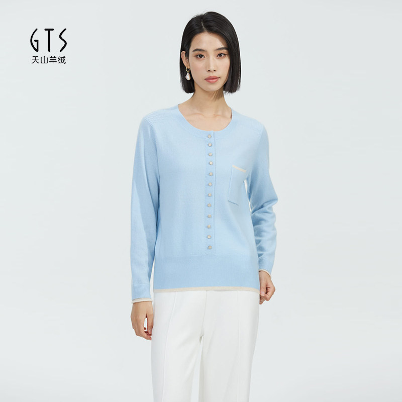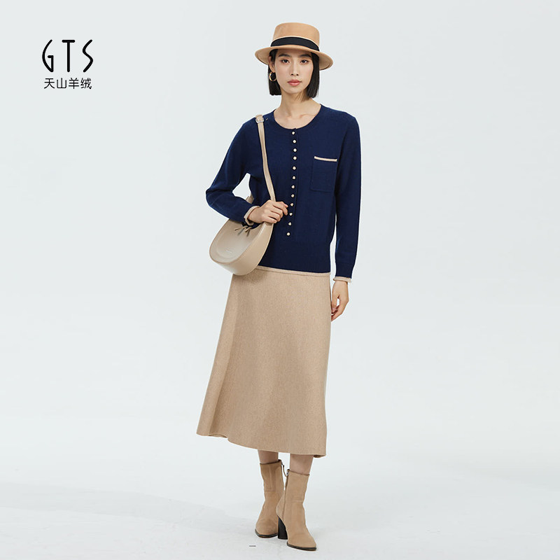 📚 新疆GTS天山100山羊绒圆领套衫女秋冬休闲通勤针织保暖毛衣