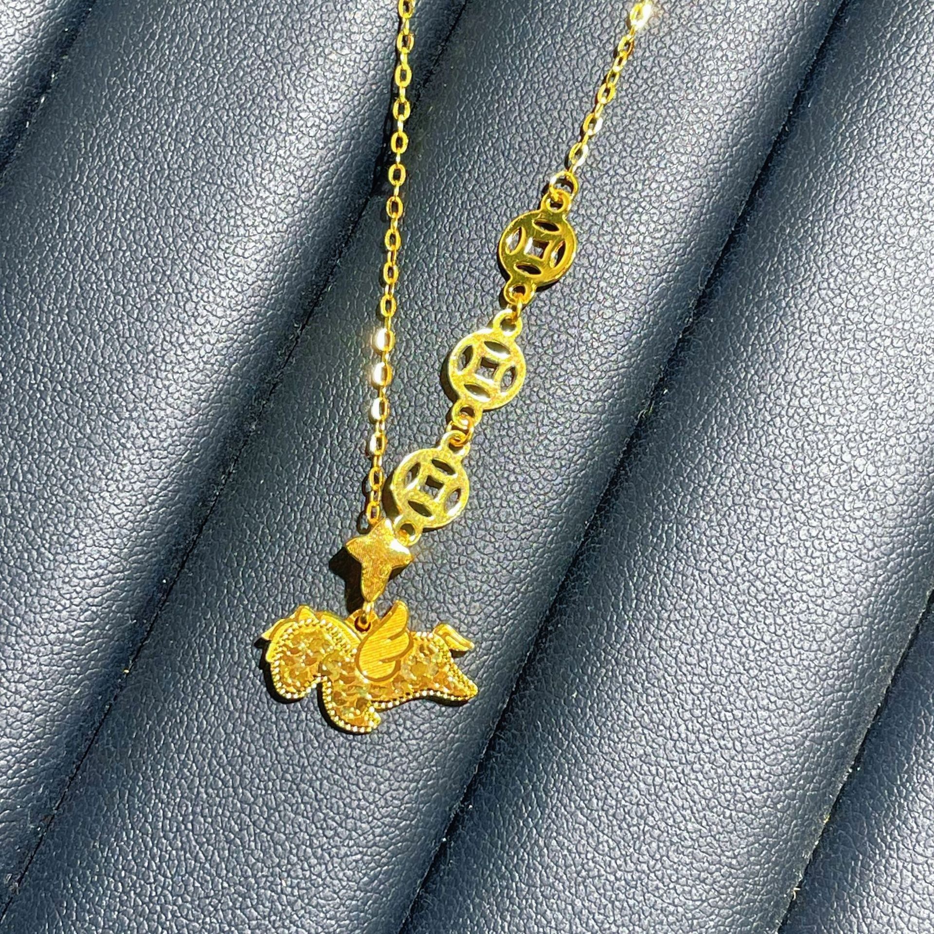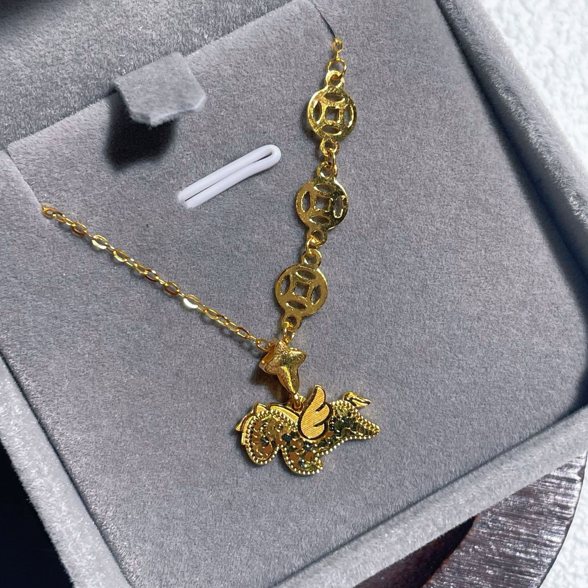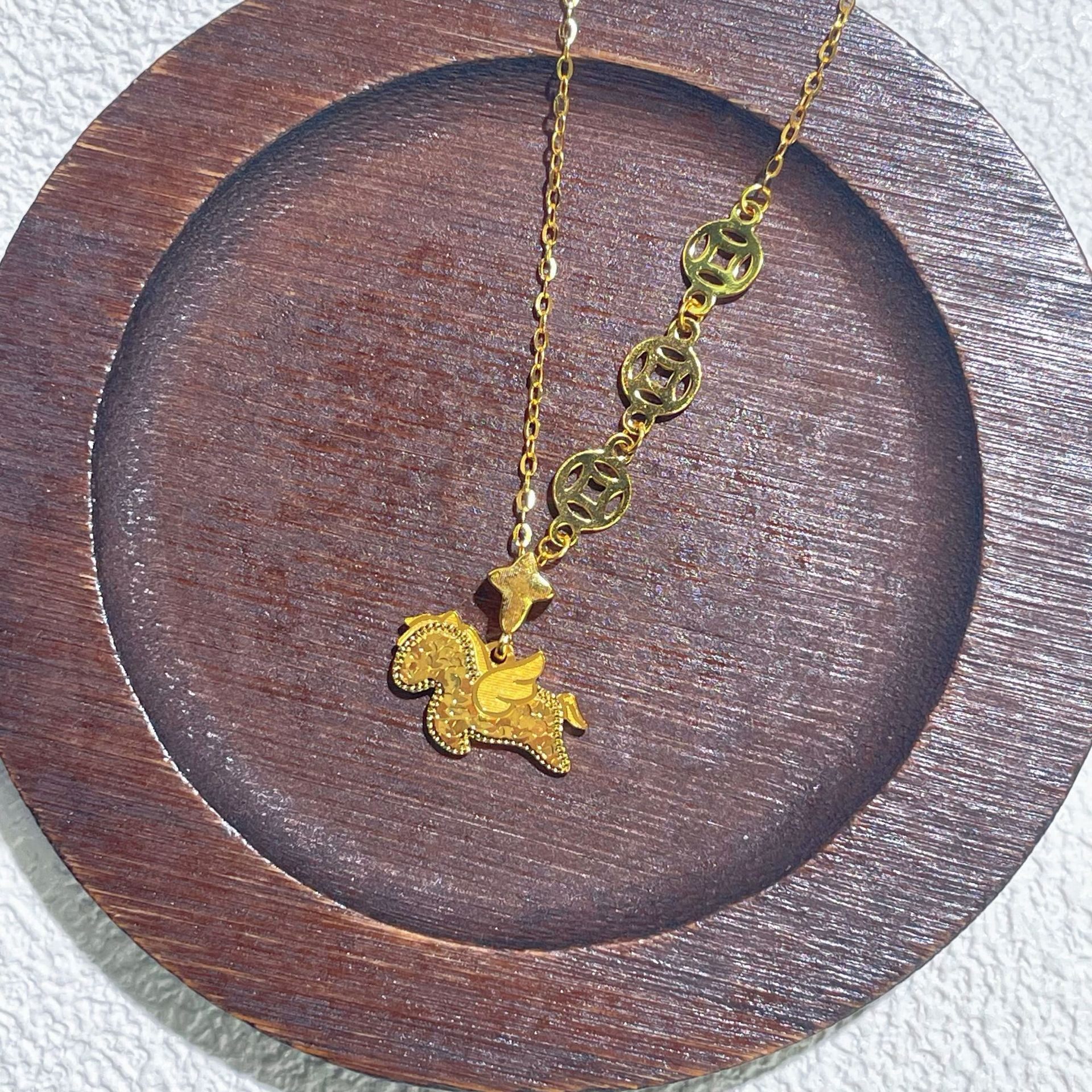 📚 s925纯银镀黄金色新款小飞马项链独角兽生肖马爆闪本命年锁骨链女