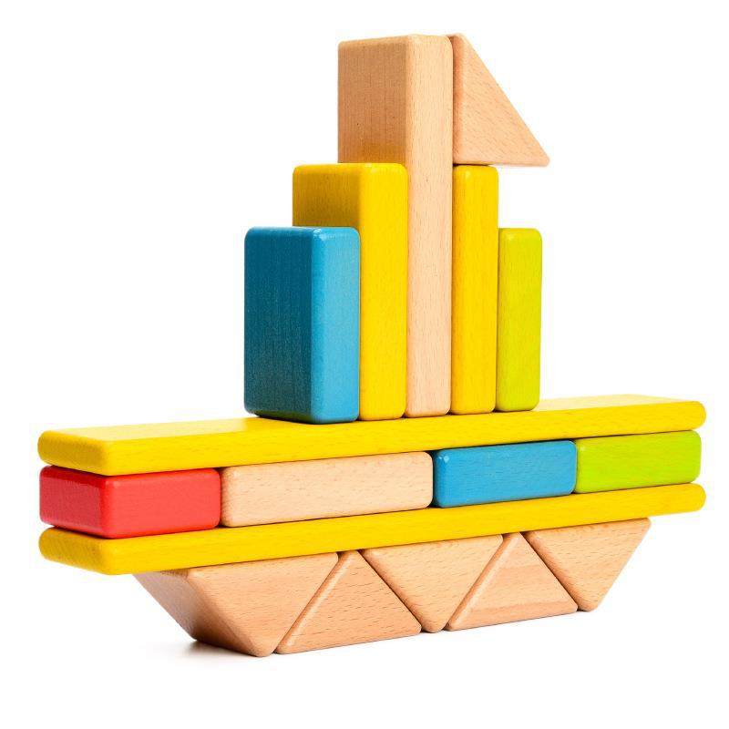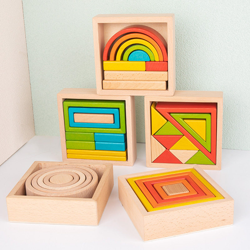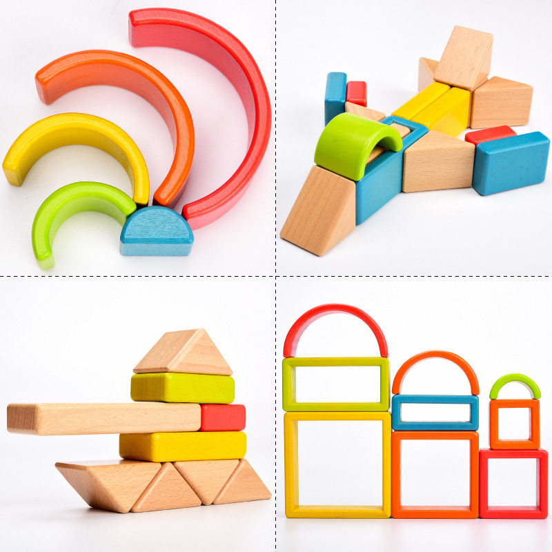📚 实木早教积木拼搭叠叠乐榉木三角形几何图形认知教学木制教具益智