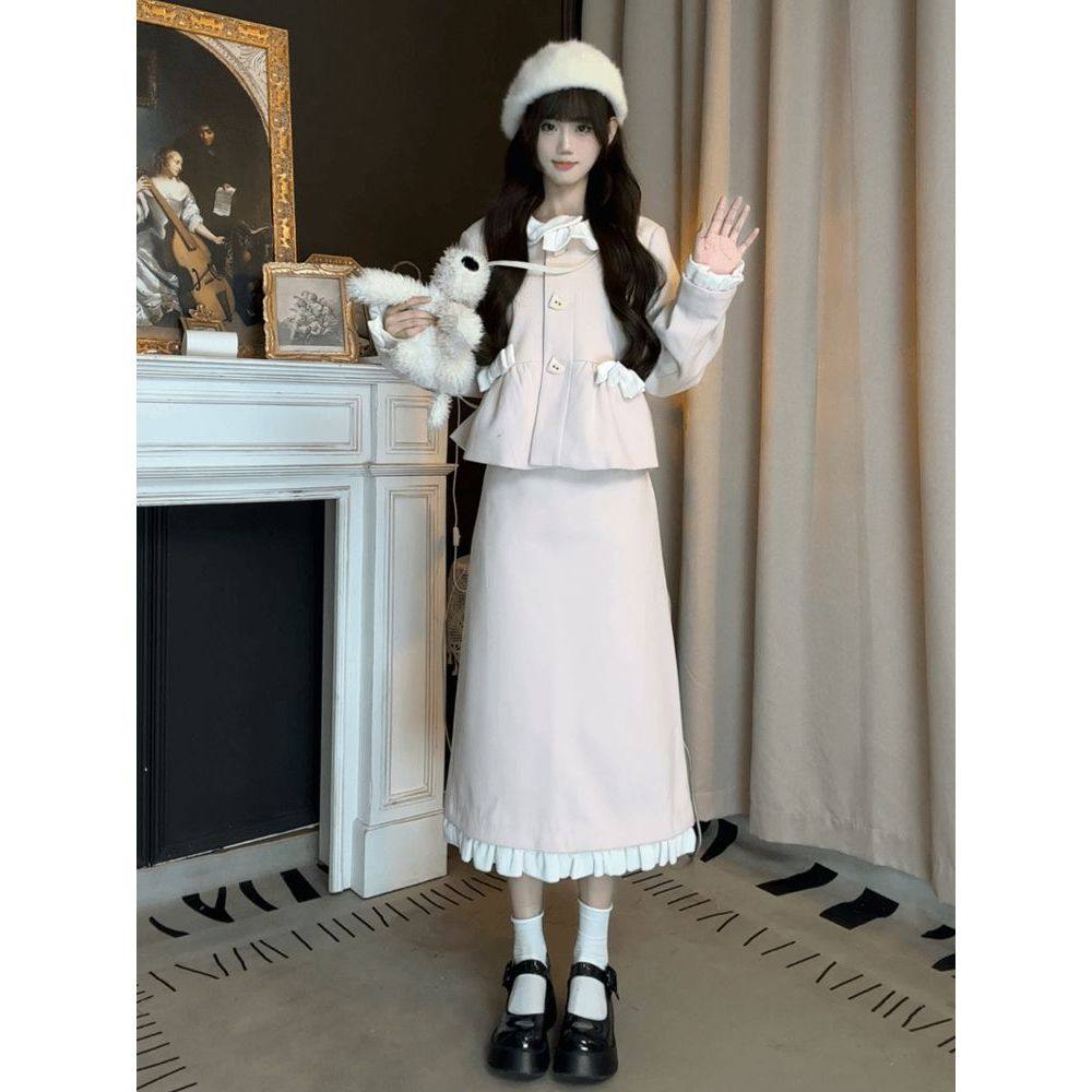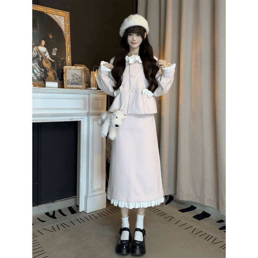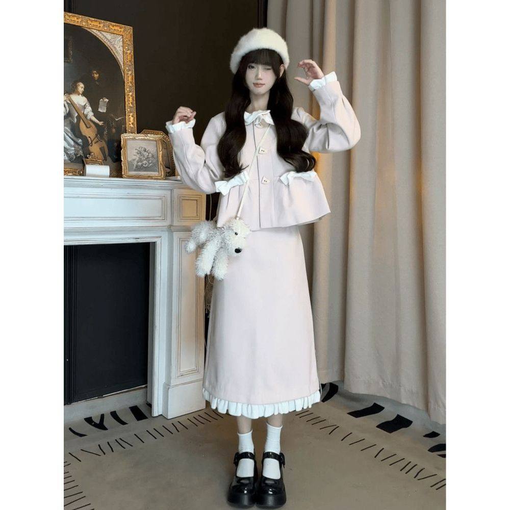 👗这套裙子的设计简直太温柔了!粉色毛呢的质地,仿佛是冬日里的暖阳,让人感到无比的舒适与温暖。盐系轻熟的风格更是让人眼前一亮,充满了时尚与高级感。