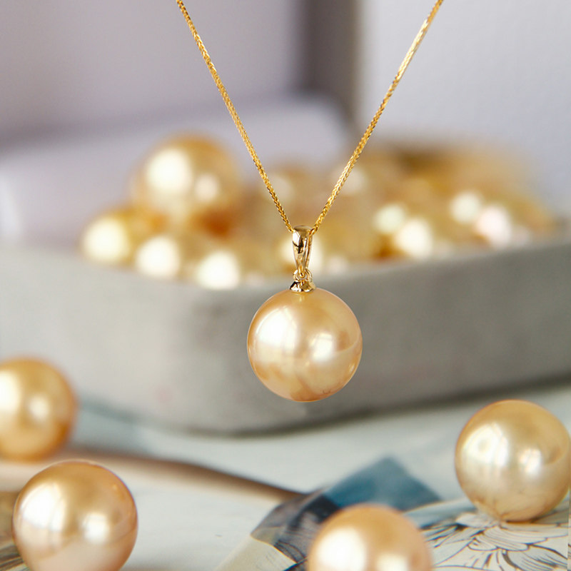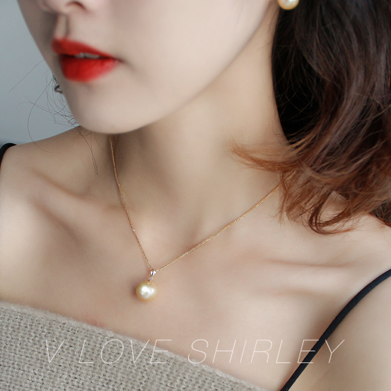 📚 【优雅浅金】天然海水18K金南洋金珠珍珠项链14mm吊坠女简约单颗