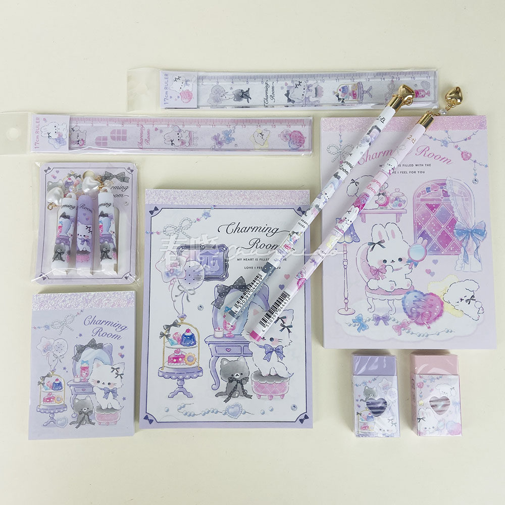 📚 日本qlia可爱的房间系列小猫小兔笔袋铅笔橡皮尺子便签铅笔帽