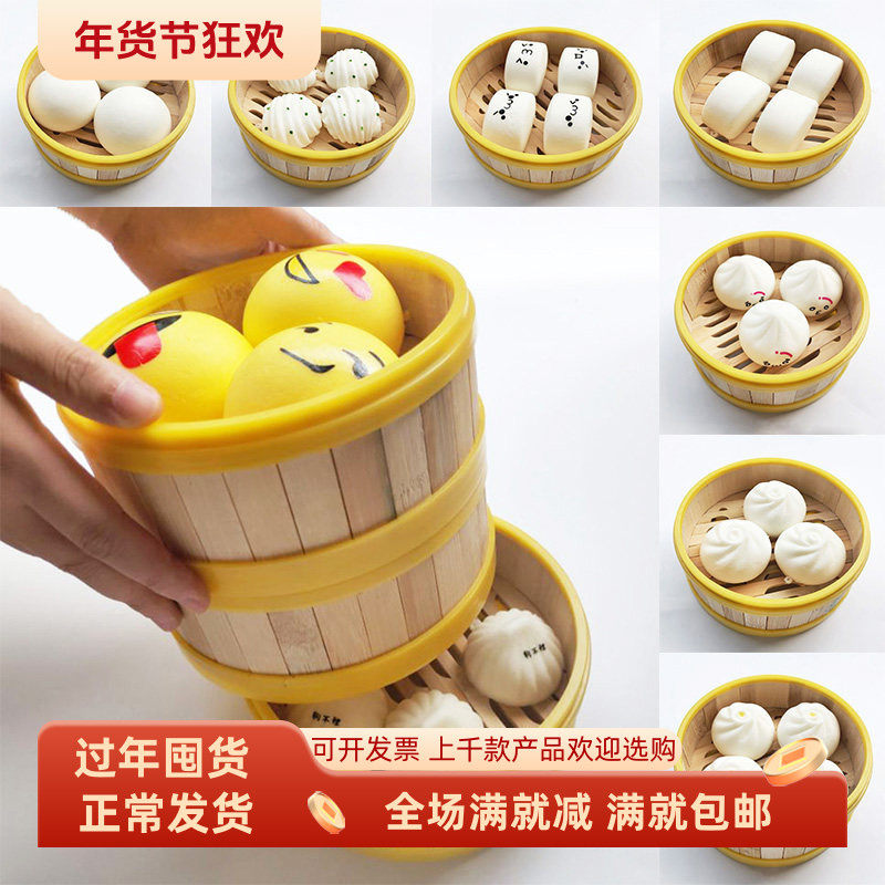📚 squish慢回弹玩具软的仿真包子饺子馒头面点心假食物蒸笼模型套装