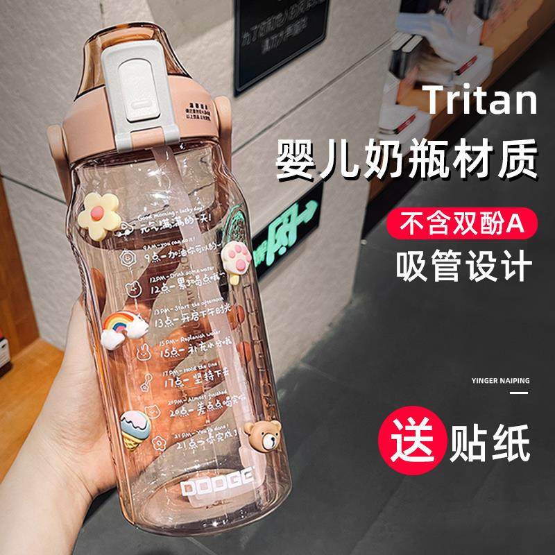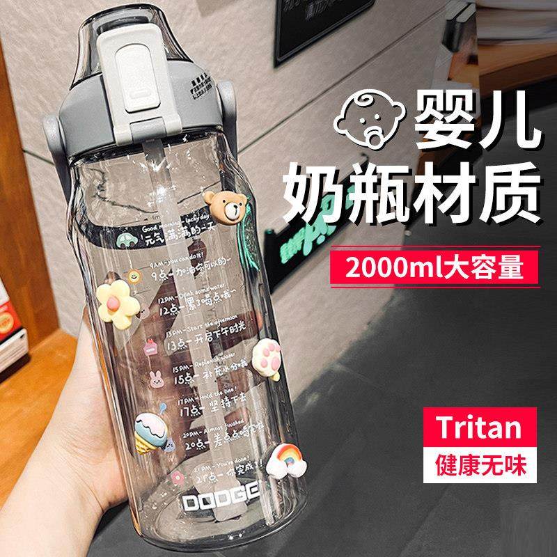 📚 tritan水杯女大容量2000ml水壶带吸管网红吨吨桶男生运动健身夏季