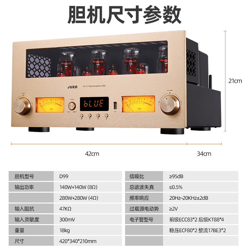 📚 JUED君笛 D99大功率场效应KT88发烧级HiFi电子管纯胆机推挽功放机