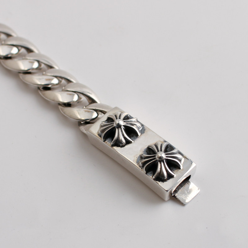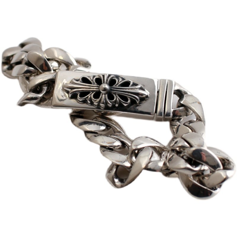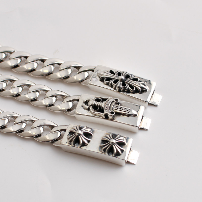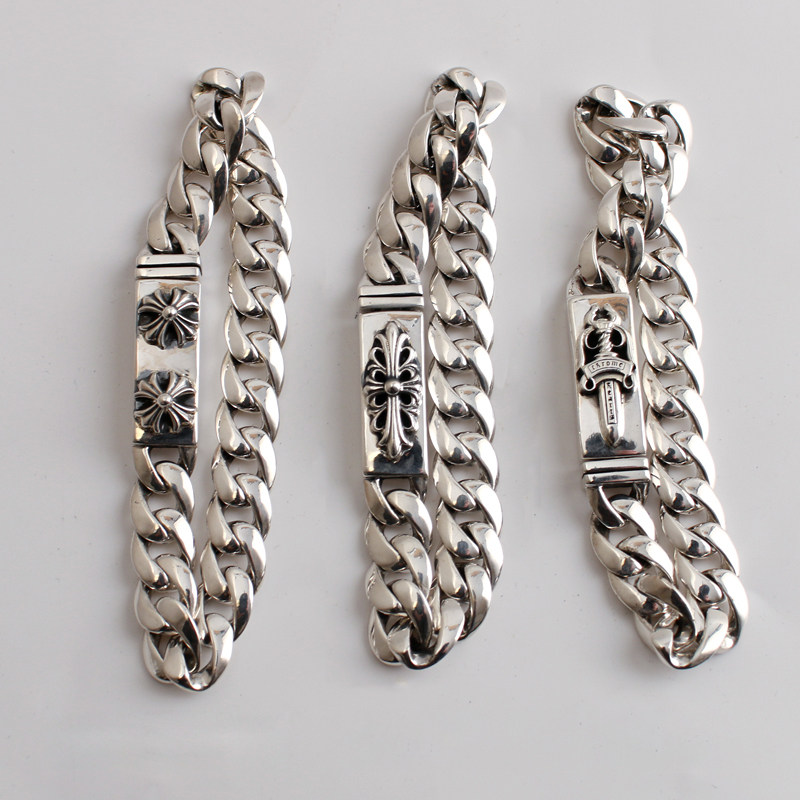 📚 一休老银匠S925纯银十字花 圣剑 朋克 潮流银手链男女款情侣手环