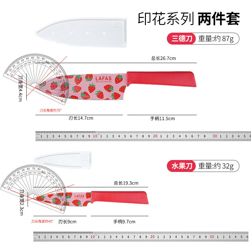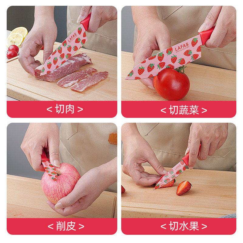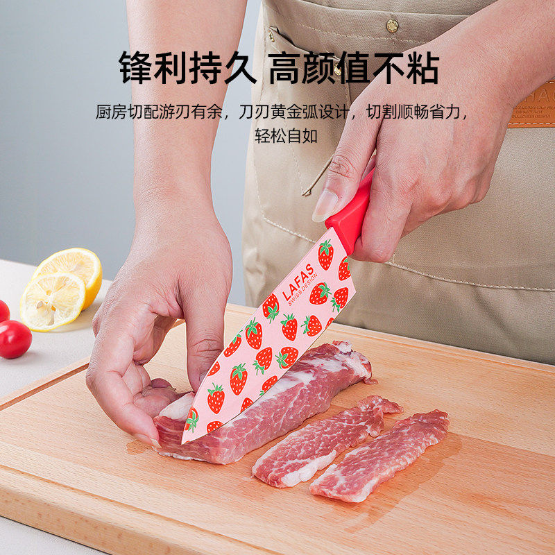 📚 拉法斯瑞士水果刀轻奢草莓系三德刀Strawberry厨房抗菌刀具CY