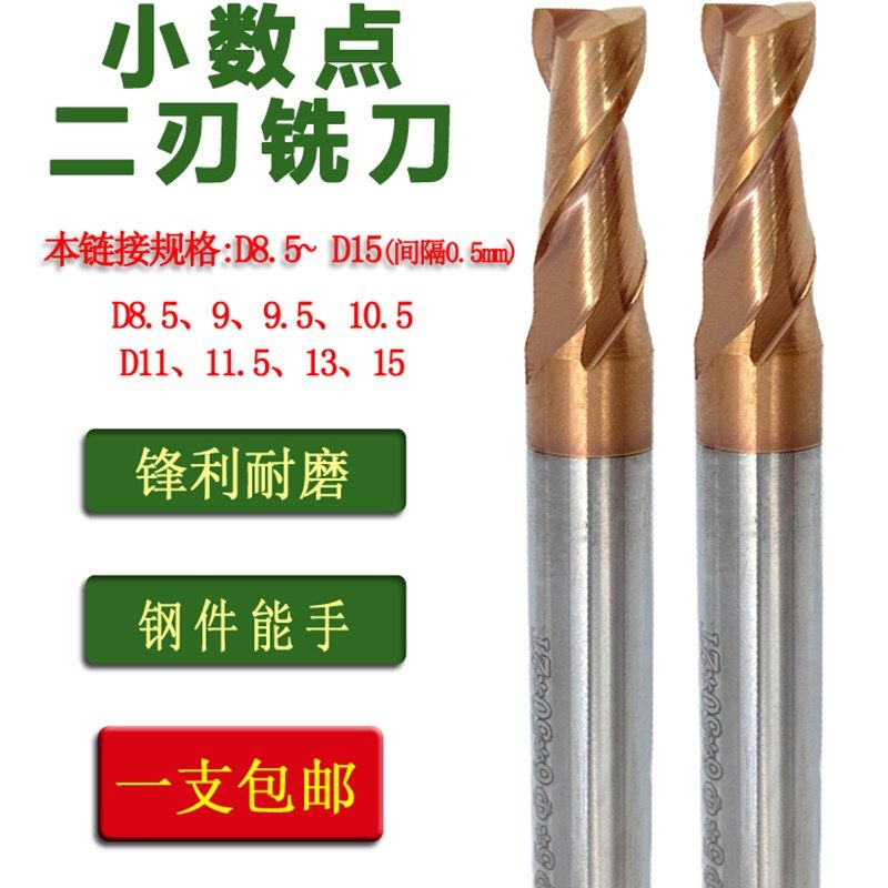 📚 钨钢合金小数点二刃铣刀钢用8.5 9 9.5 10.5 11.5 15两刃键槽刀