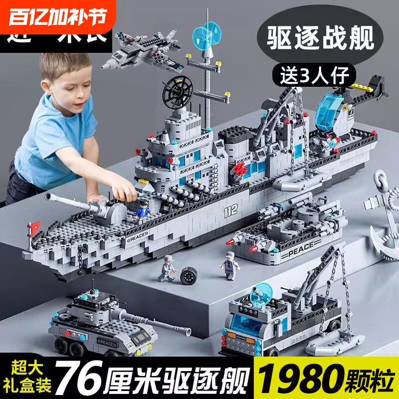 📚 2025孩子儿童玩具航空母舰积木军舰男巡洋舰模型礼物驱逐舰航母