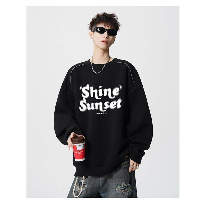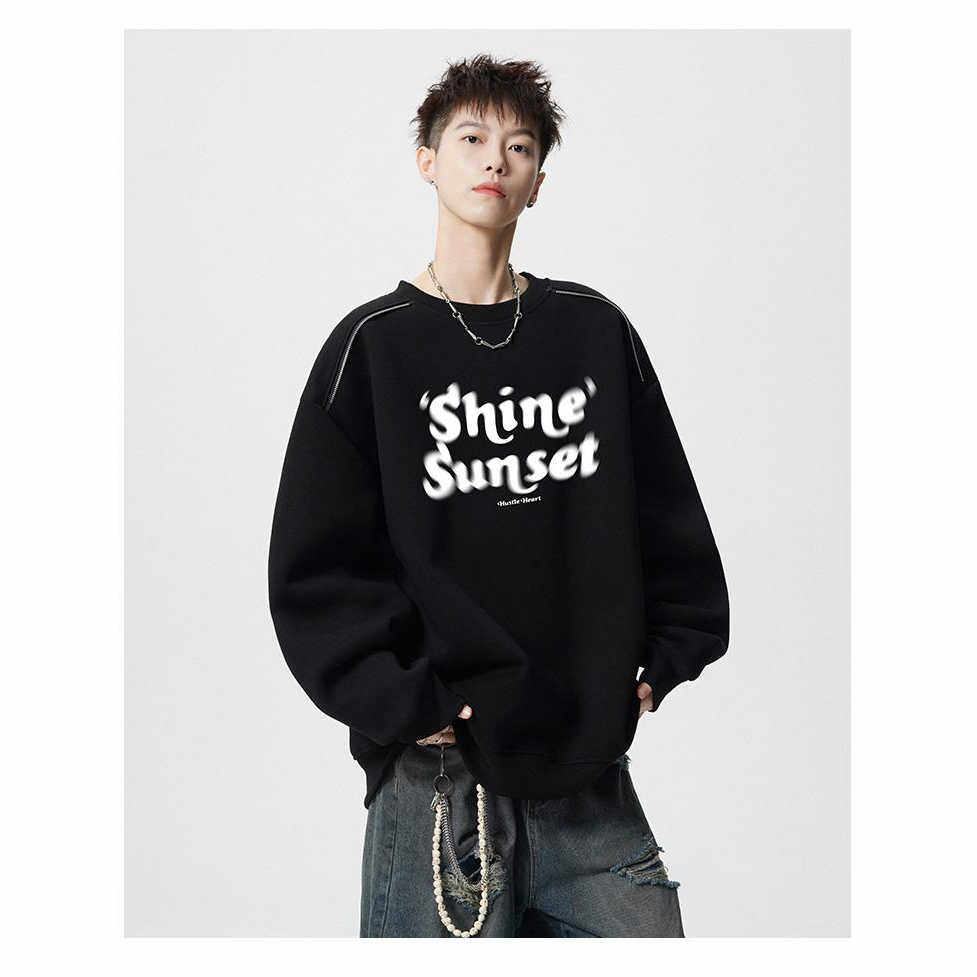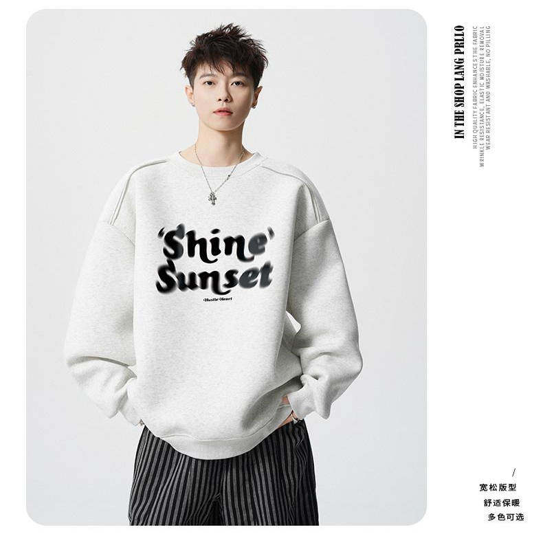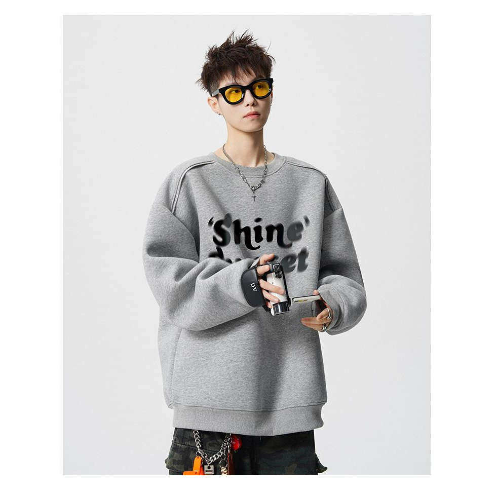 📚 美式重磅圆领卫衣男秋冬潮牌高级感字母印花宽松情侣上衣加绒加厚