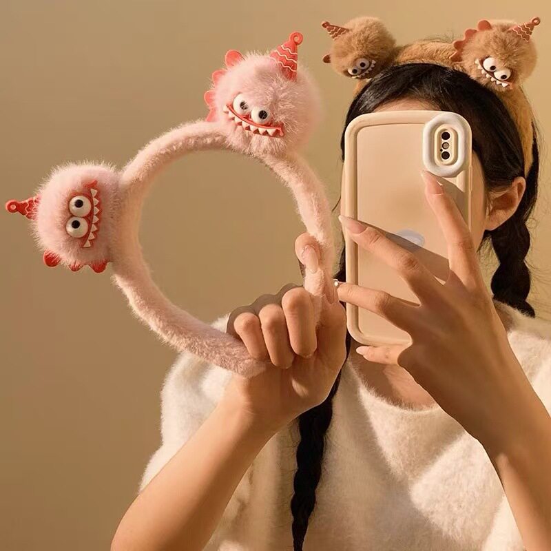 📚 呲牙卡通毛绒搞怪发箍女新款秋冬洗脸专用头箍网红发卡发捆头饰品