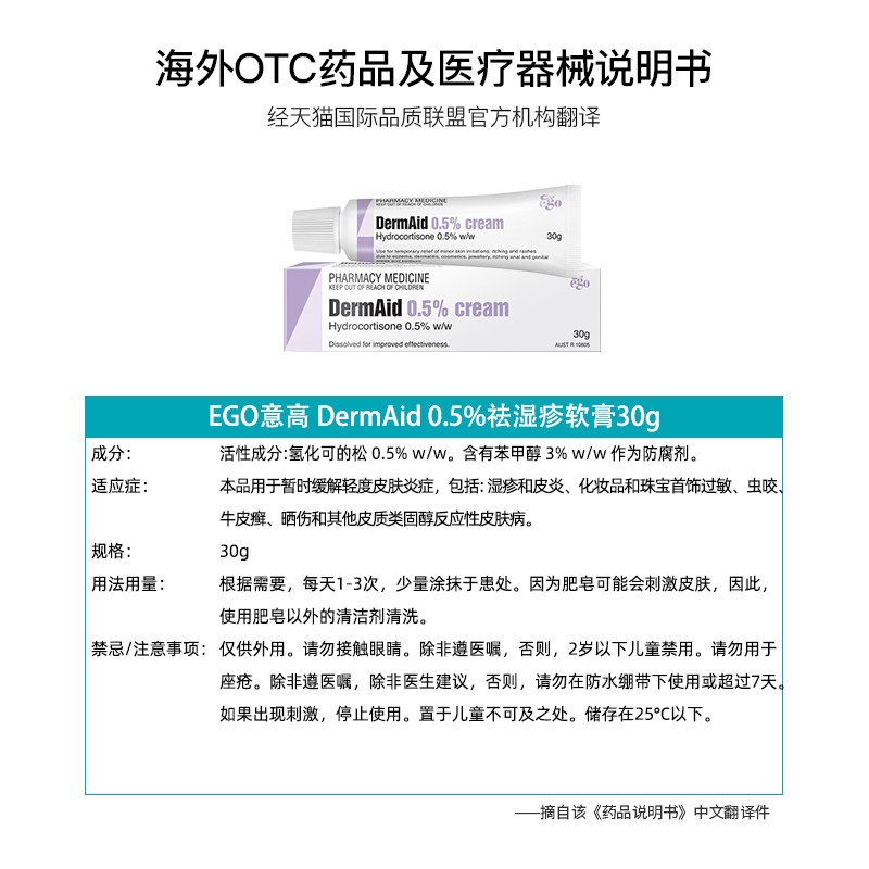 📚 Ego意高Dermaid进口湿疹膏皮炎过敏皮肤瘙痒止痒氢化可的松乳膏
