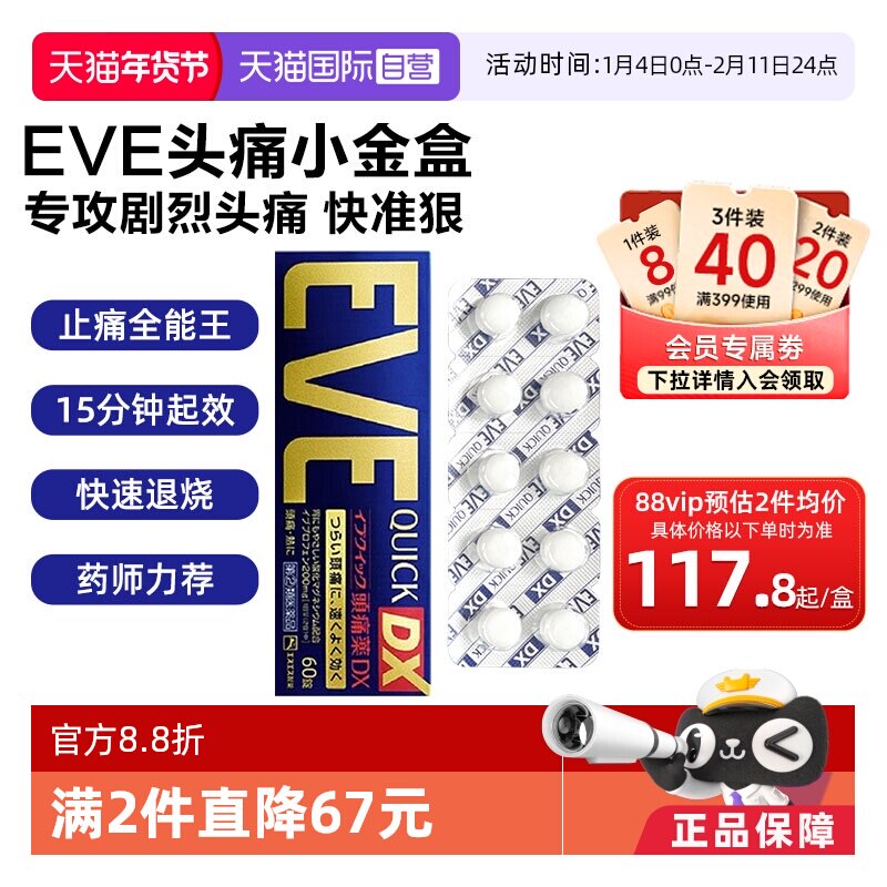 📚 【自营】日本白兔EVE止疼药退烧关节痛牙痛头痛布洛芬止痛药60粒