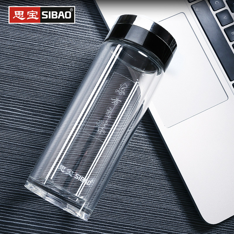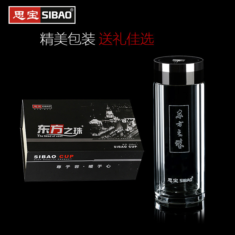 📚 思宝旗舰店东方之珠双层商务带手柄玻璃杯随手直筒杯泡茶商务水杯