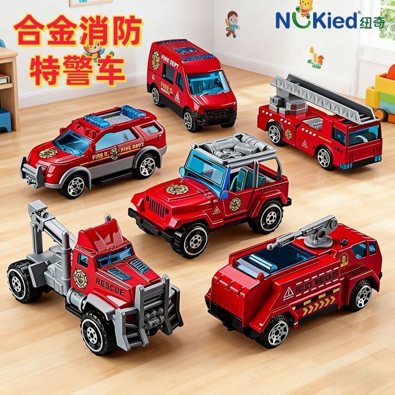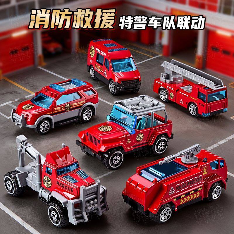 📚 合金消防车玩具车汽车洒水机云梯车儿童特警小汽车模型男礼物