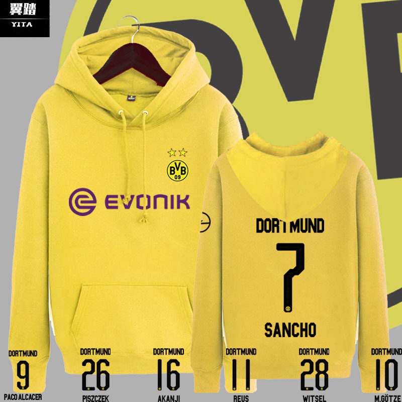 📚 多特蒙德队服罗伊斯连帽卫衣男运动足球衣服帕科桑乔外套带帽加绒
