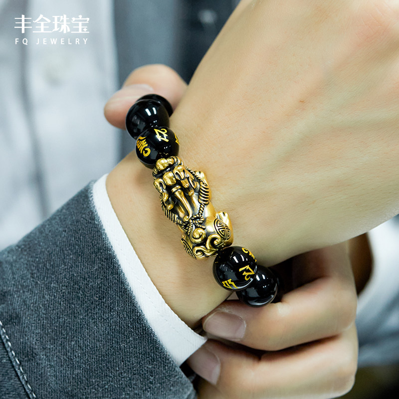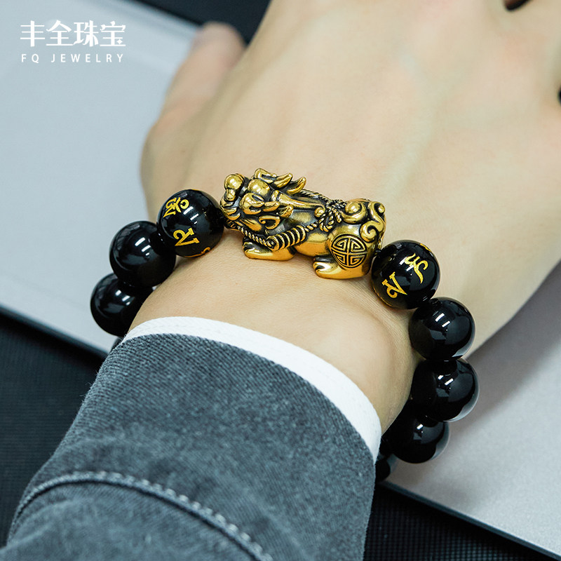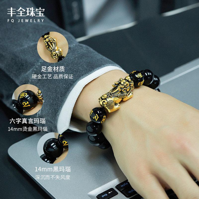 📚 足金貔貅手串男款黄金转运珠招财纳福男士黑金聚财手链七夕礼物
