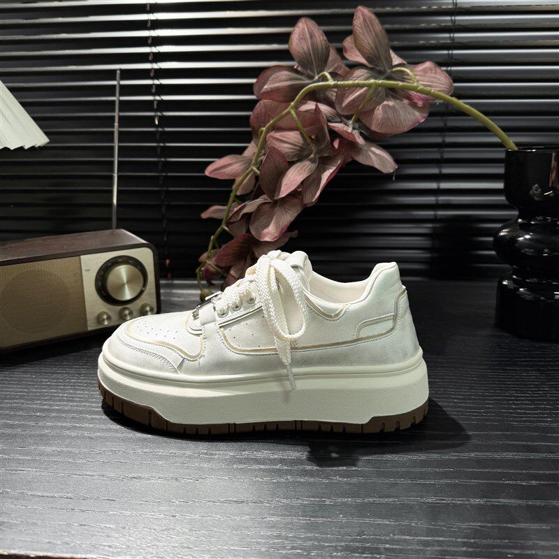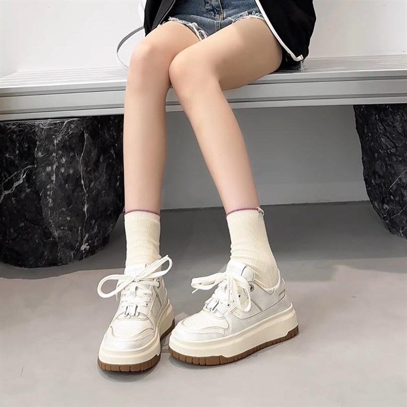 📚 真皮6公分32码起透气做百搭增高厚底显腿长秋新款做旧小白鞋板鞋