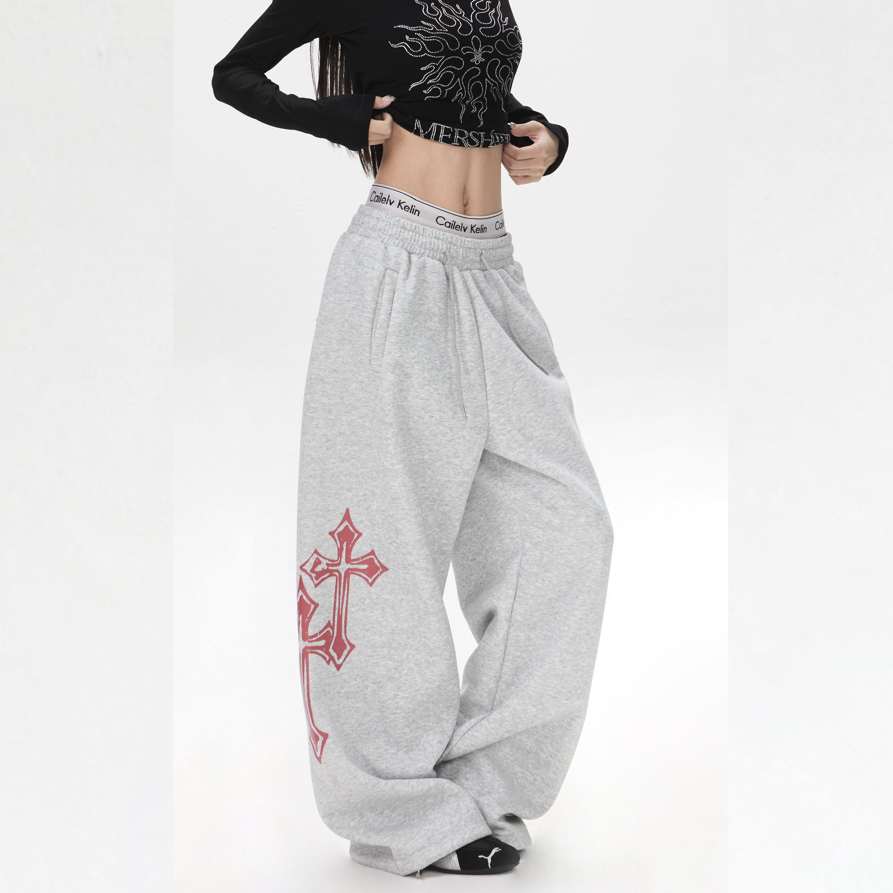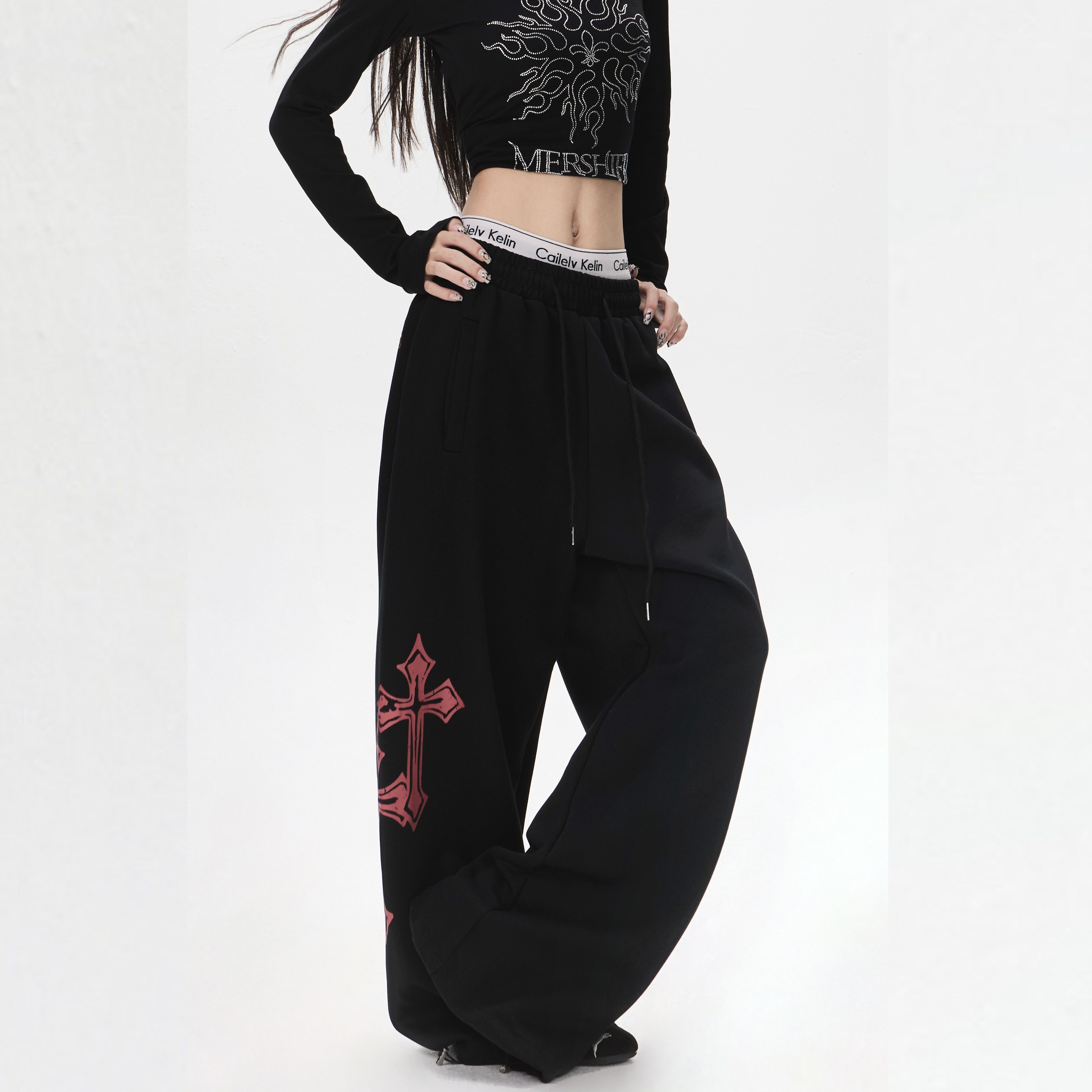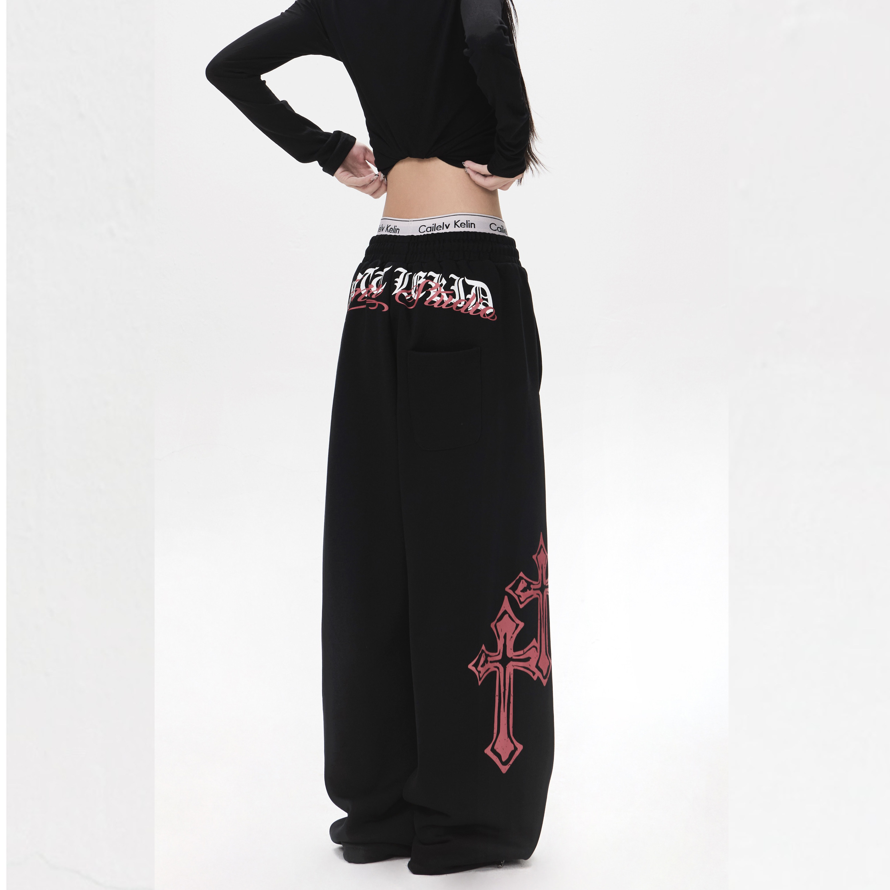 📚 【零碎岛屿】美式哥特字体印花阔腿卫裤男女宽松垂感休闲街舞长裤