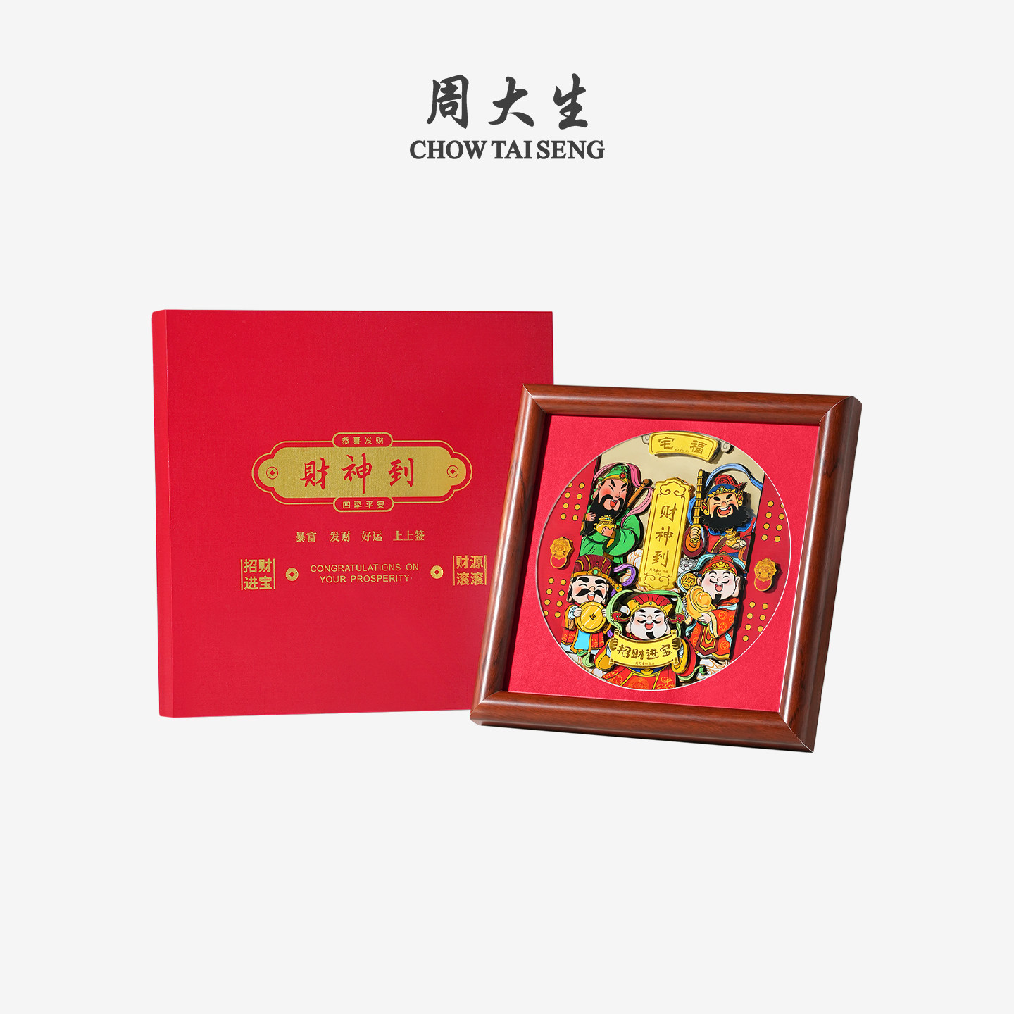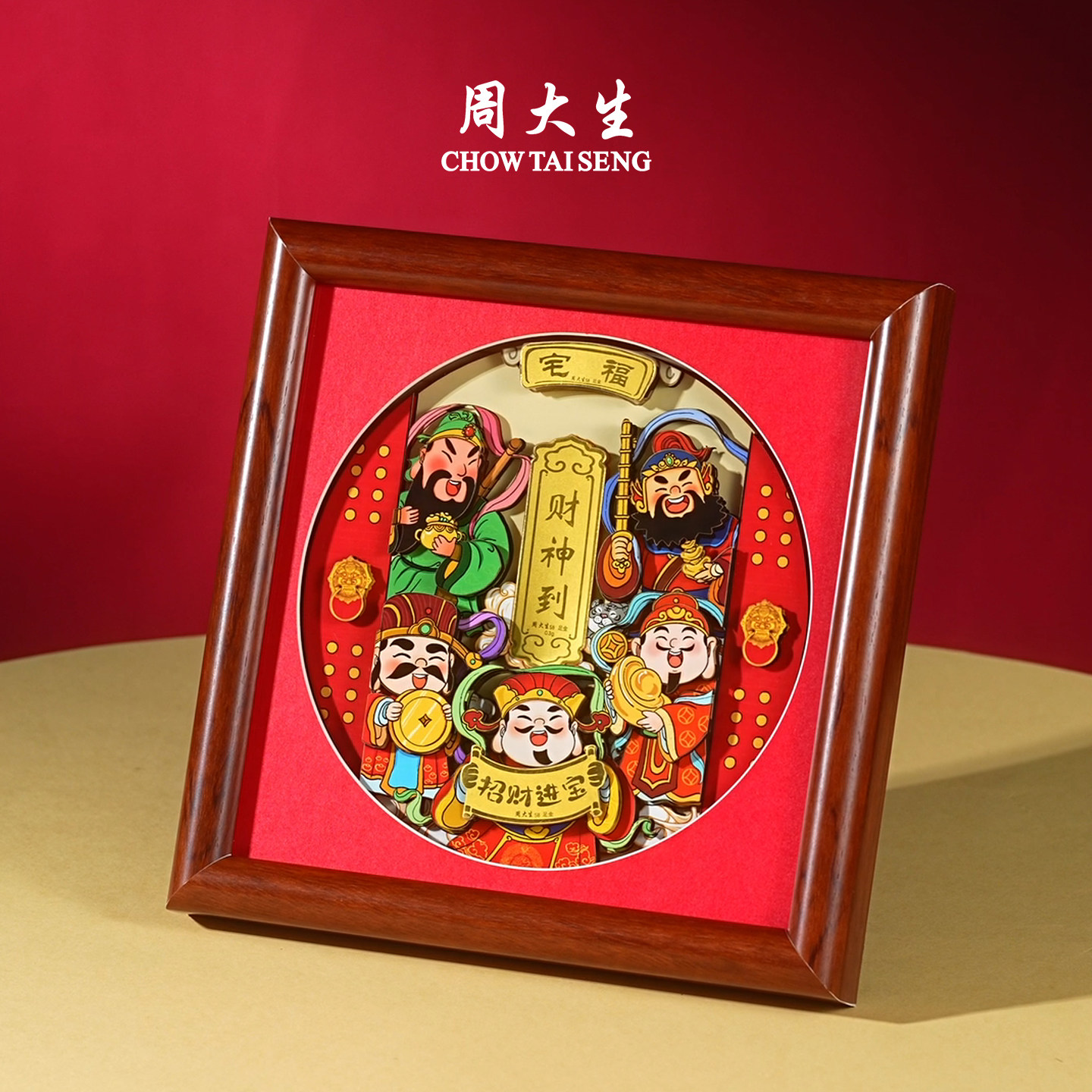 📚 周大生黄金摆件足金财神临门相框挂件工艺品投资收藏纪念新年礼物