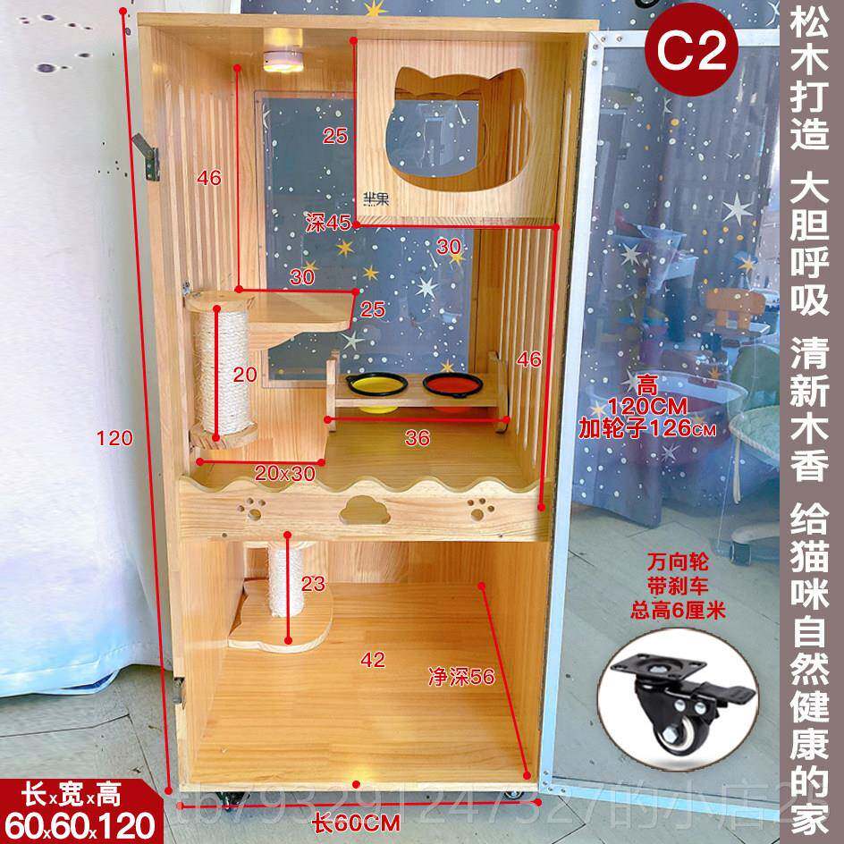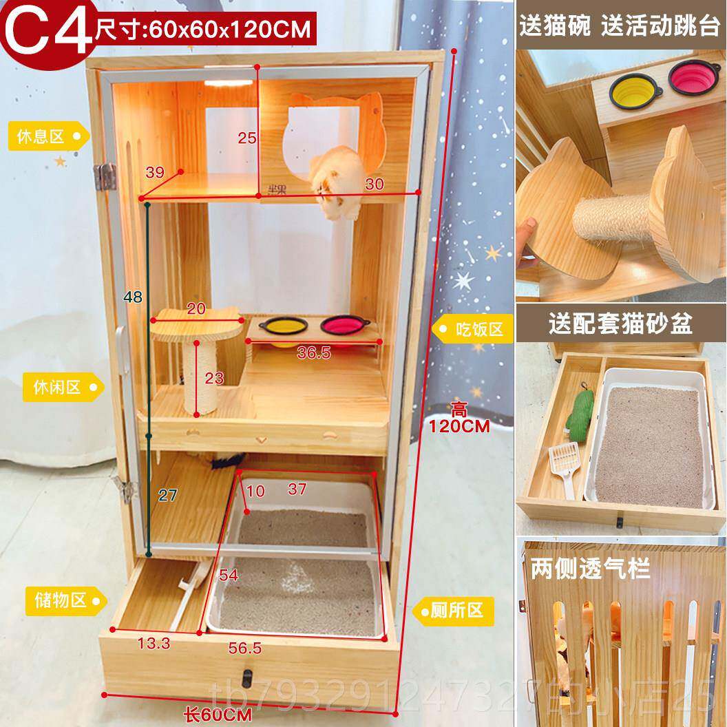 📚 高档实木猫猫别带厕所一体用猫屋一祇猫挂碗笼两层家猫柜宠物墅店