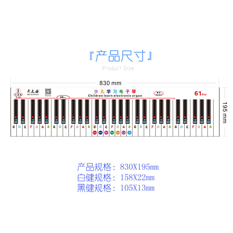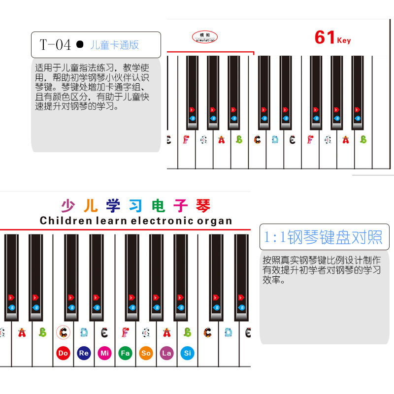 📚 新款儿童钢琴键盘练习贴纸卡通字组61键手卷钢琴指法练习