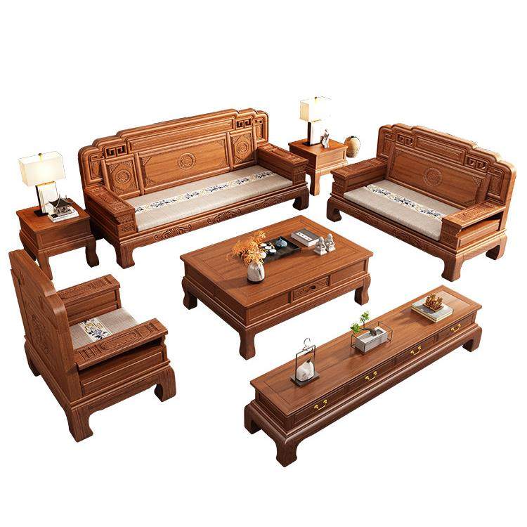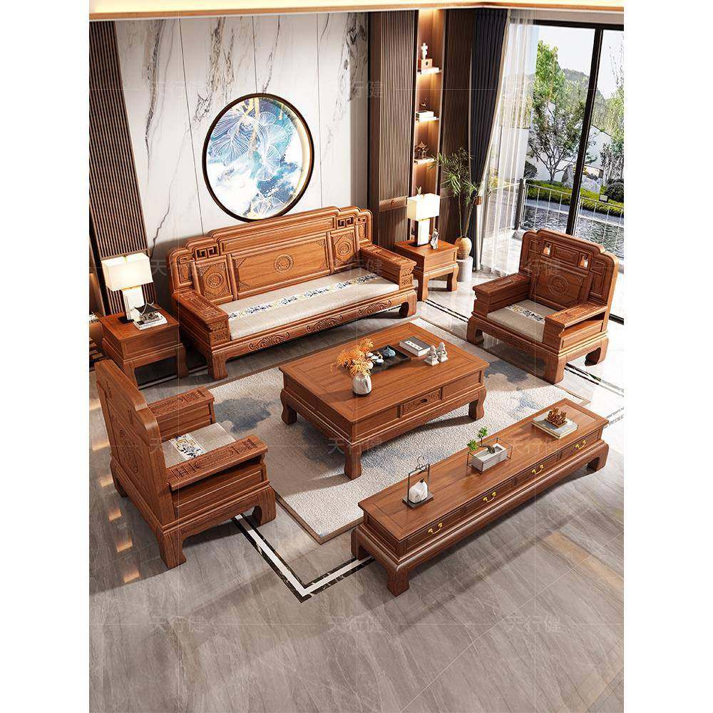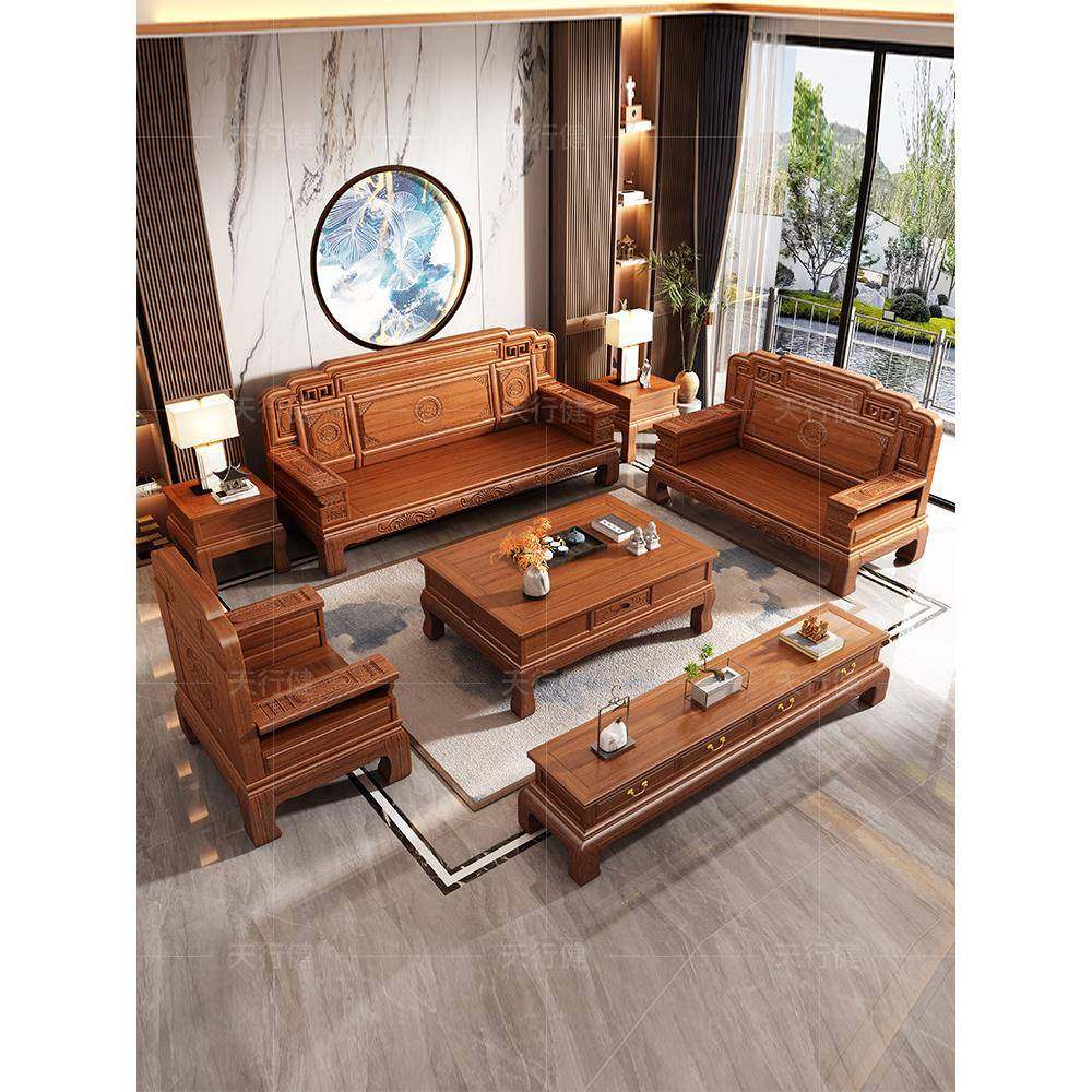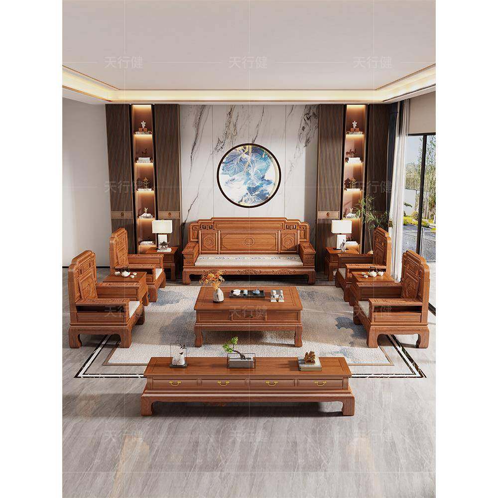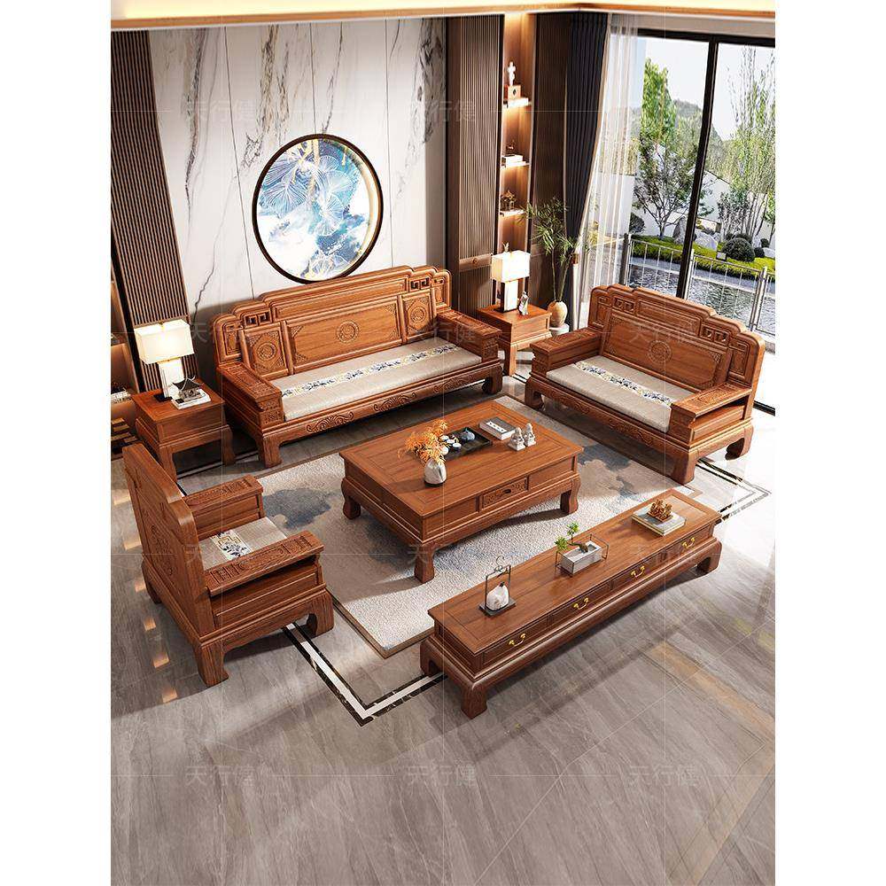 📚 印尼金花梨木全实木沙发新中式客厅彷古农村冬夏两用雕花全屋家具
