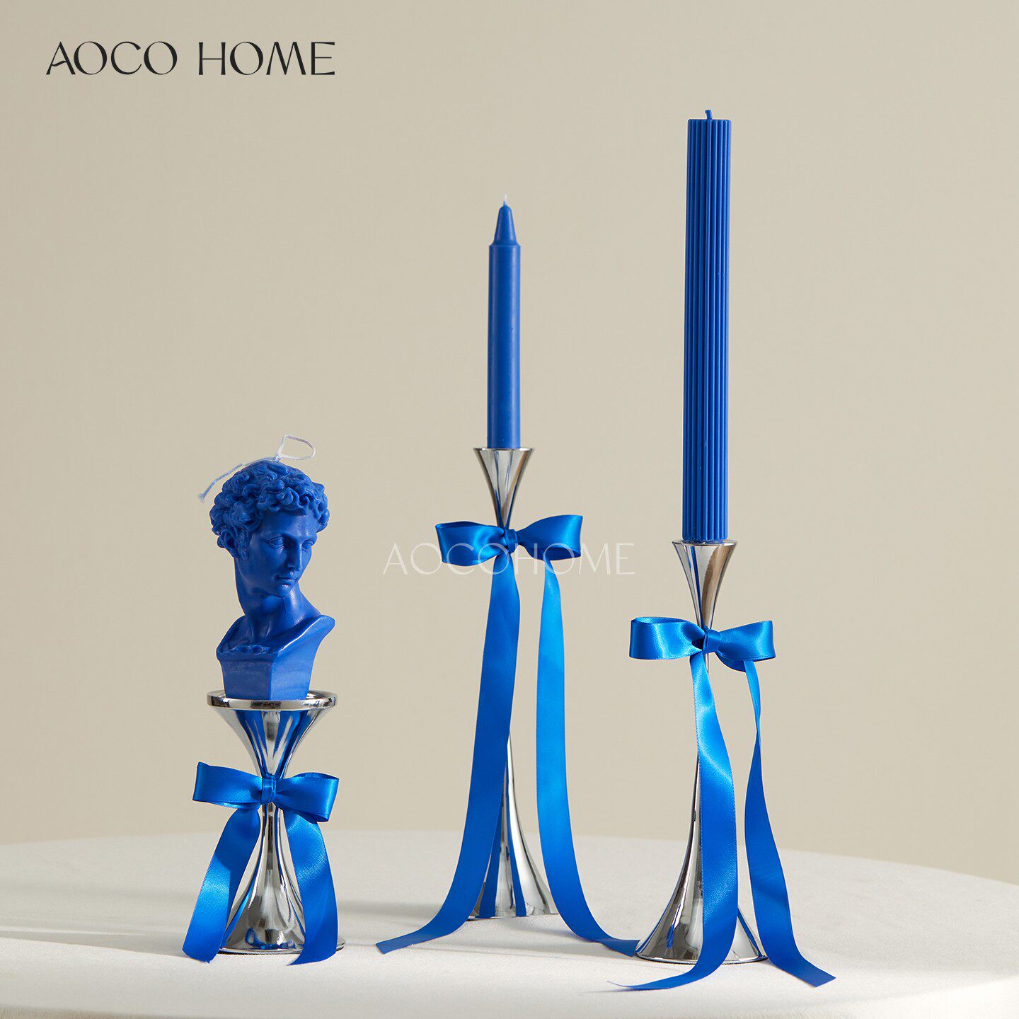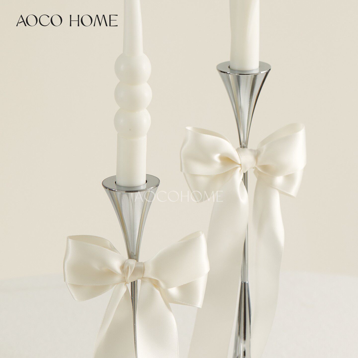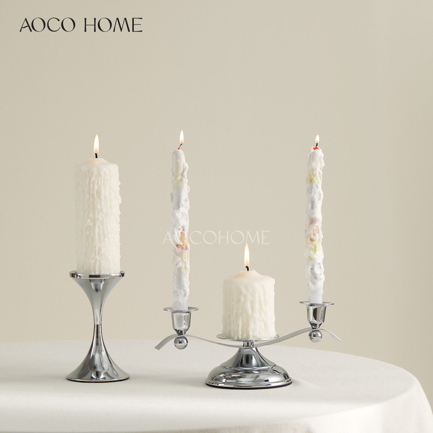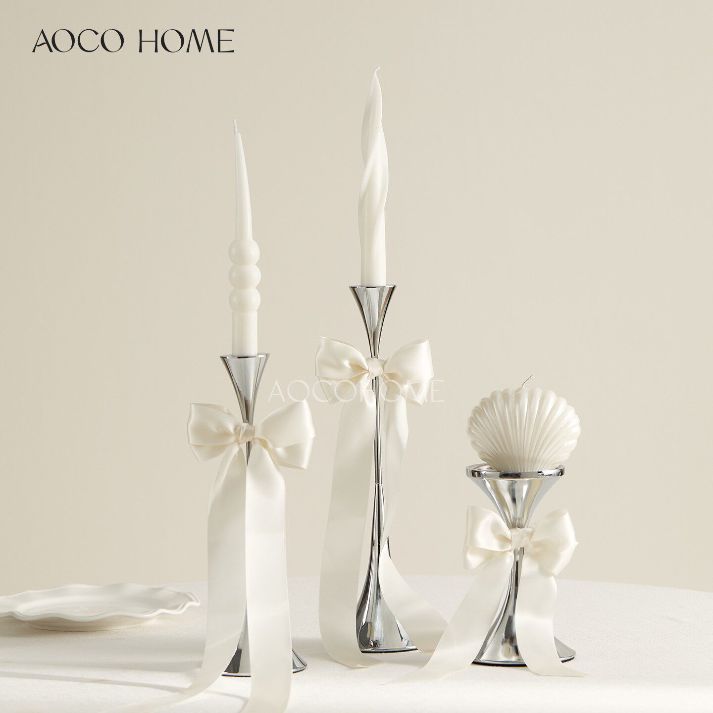 📚 北欧轻奢银色烛台金属蜡烛托台样板房客厅软装摆件简约高级感装饰