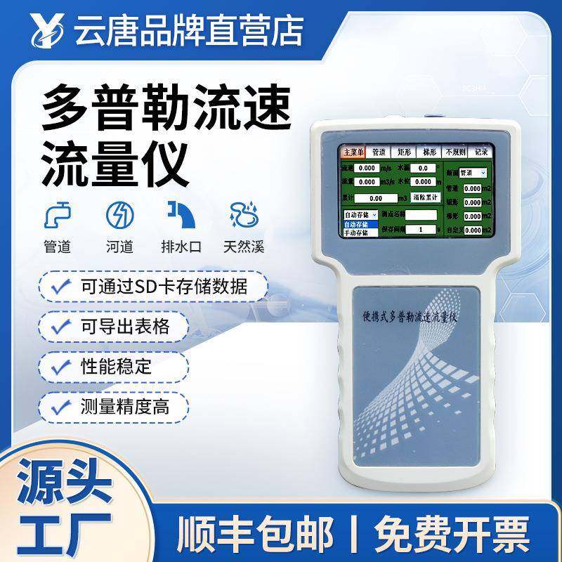📚 便携式多普勒流速流量测定仪河流河道流量计排水渠明渠超声波探头